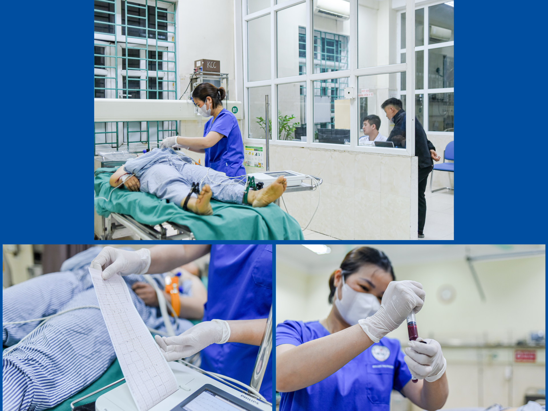 Tại khu vực Cấp cứu ở tầng 1 dãy nhà A của Bệnh viện, ngày hay đêm cũng chẳng khác biệt. Căn phòng đứng yên, chỉ có con người và máy móc luôn cuốn vào một guồng quay khẩn trương, bởi nơi đây là “cửa ngõ sinh tử”, tiếp nhận, phân loại và xử trí ban đầu cho mọi ca cấp cứu từ các chuyên khoa và tuyến dưới chuyển lên.
