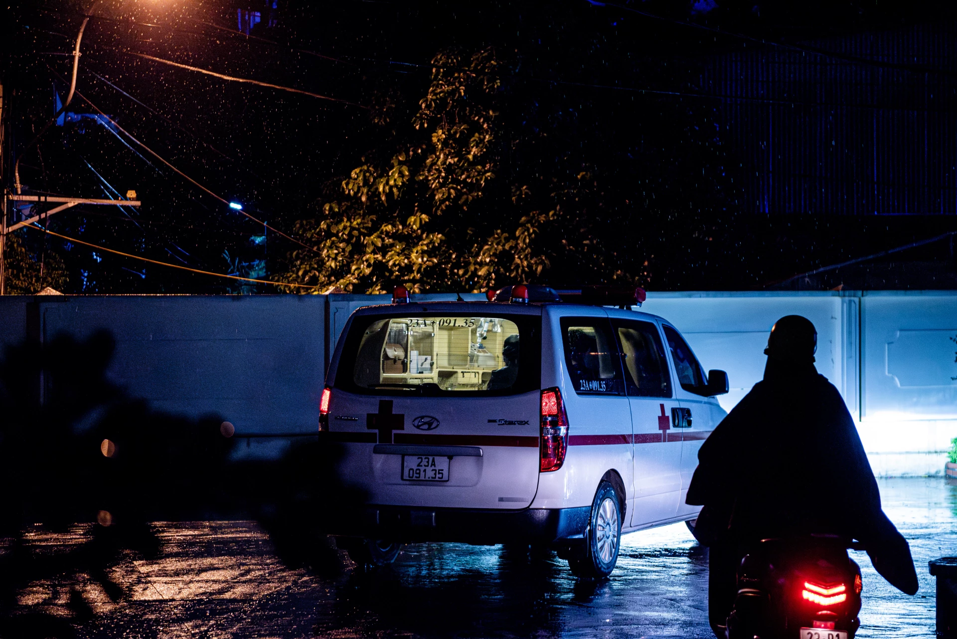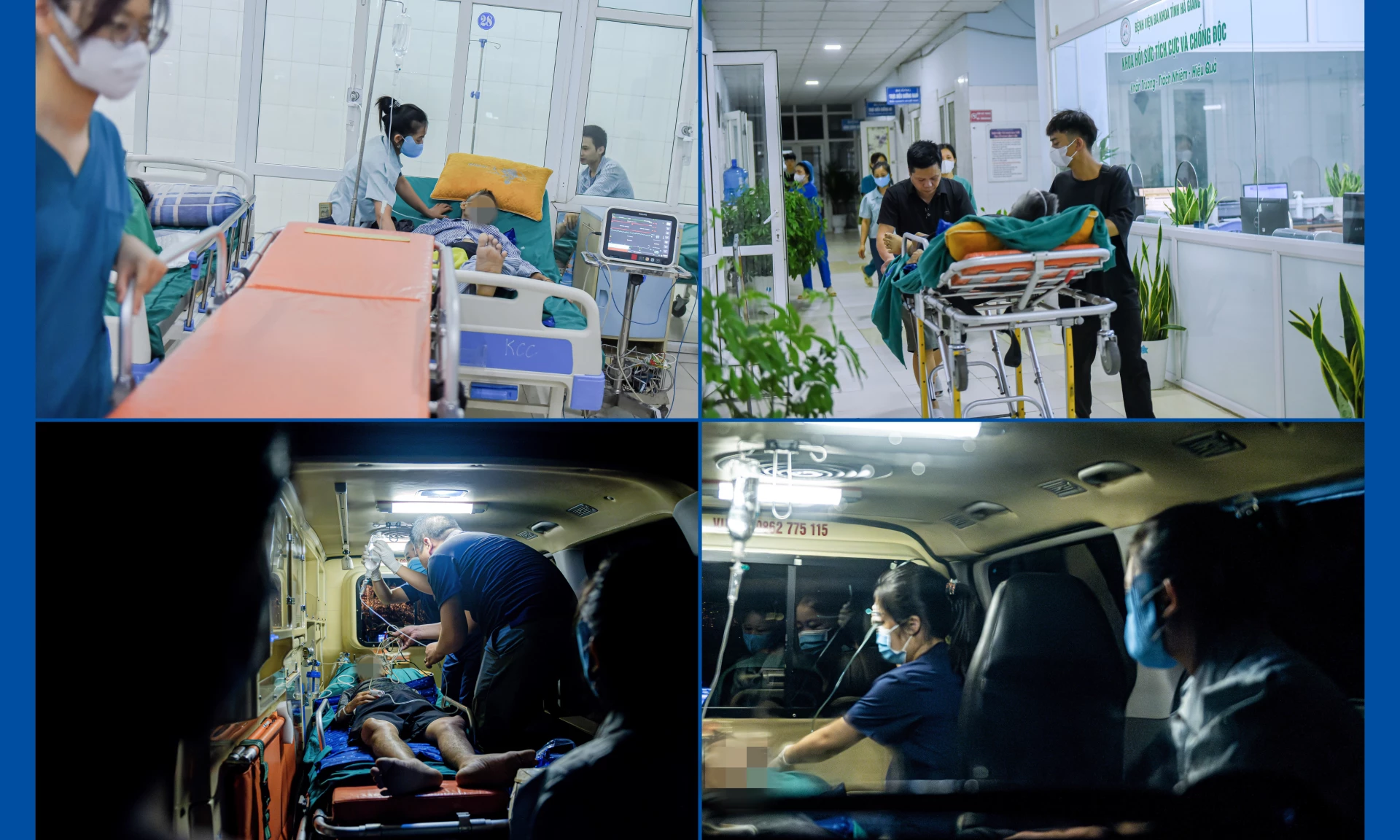 Một hồi “bíp…bíp…bíp” của máy đã lặng im trong phòng bệnh. Điều dưỡng tắt máy thở, hỗ trợ chuyển ông lên cáng, chuẩn bị cho chuyến xe cấp cứu về nhà giữa đêm mưa.