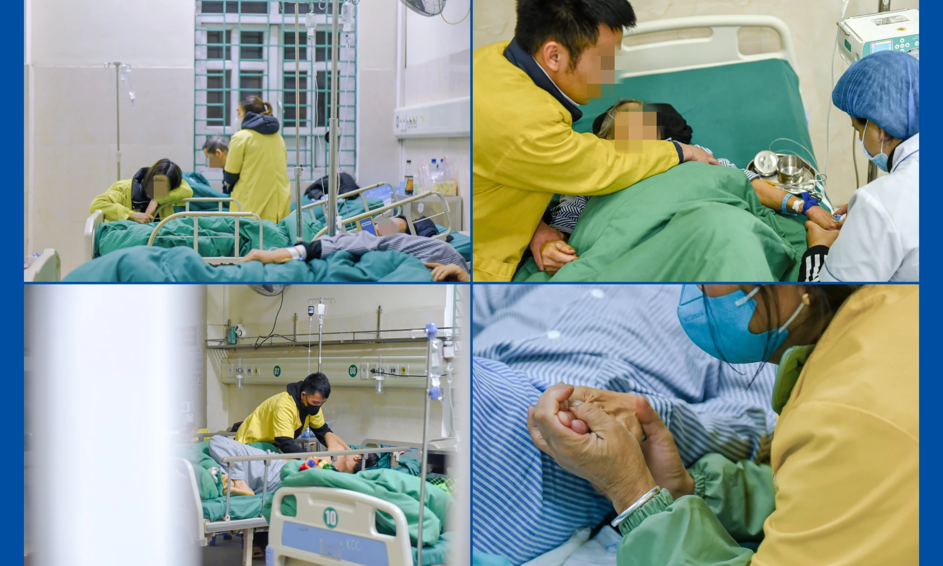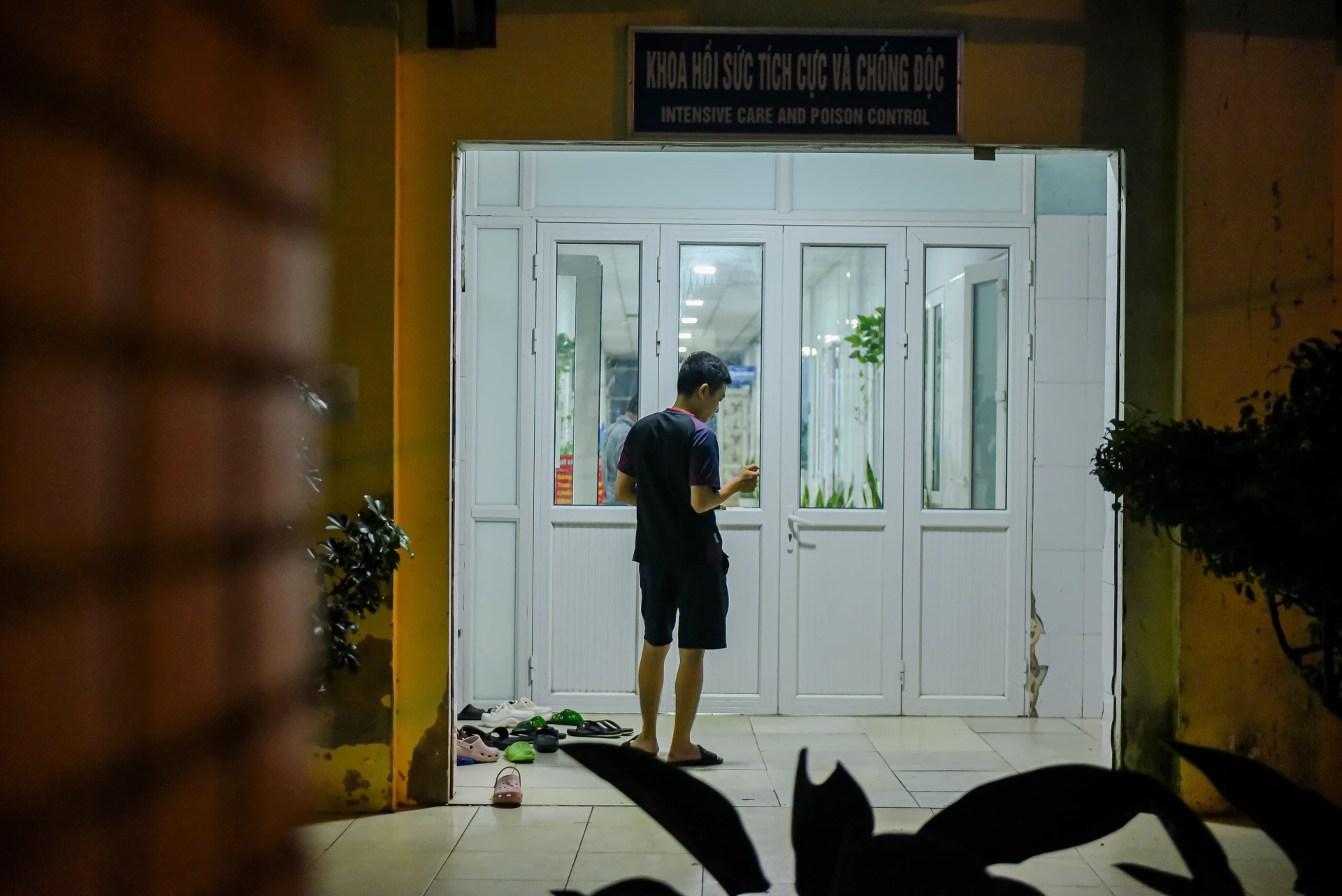 Ba phòng bệnh với gần 30 bệnh nhân đang điều trị luôn trong tình trạng căng thẳng, nặng nề. Căn phòng lim dim sáng bởi đã là giờ ngủ, người nhà bệnh nhân thay nhau túc trực, người thức trắng, người tranh thủ chợp mắt ngay bên giường bệnh. Mệt mỏi và lo lắng hằn rõ trên khuôn mặt của cả bệnh nhân lẫn người chăm sóc.
