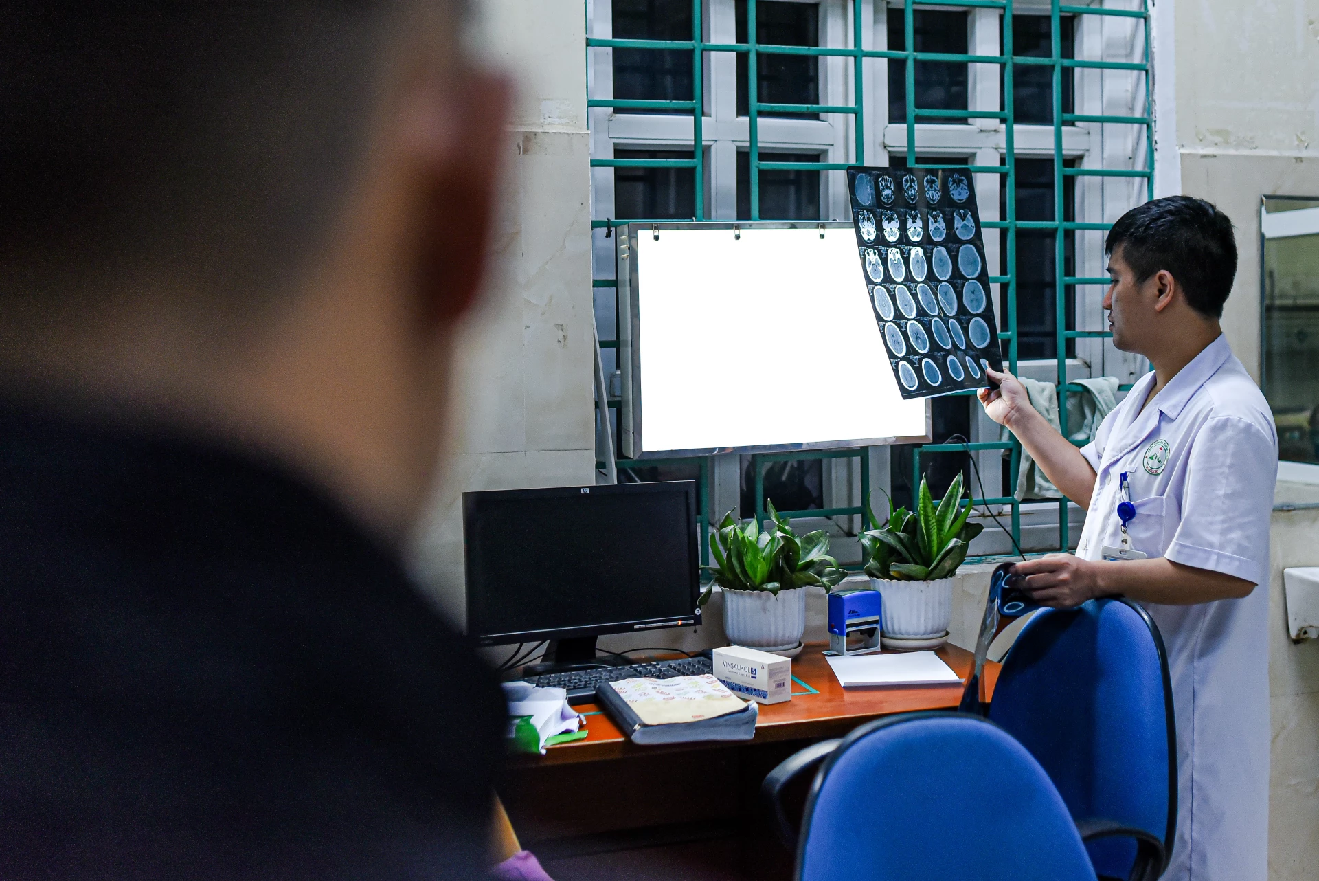 Bác sĩ Kiên giải thích thêm các nguy cơ, rủi ro của ca mổ. Người nhà nhìn nhau, lặng đi vài giây.