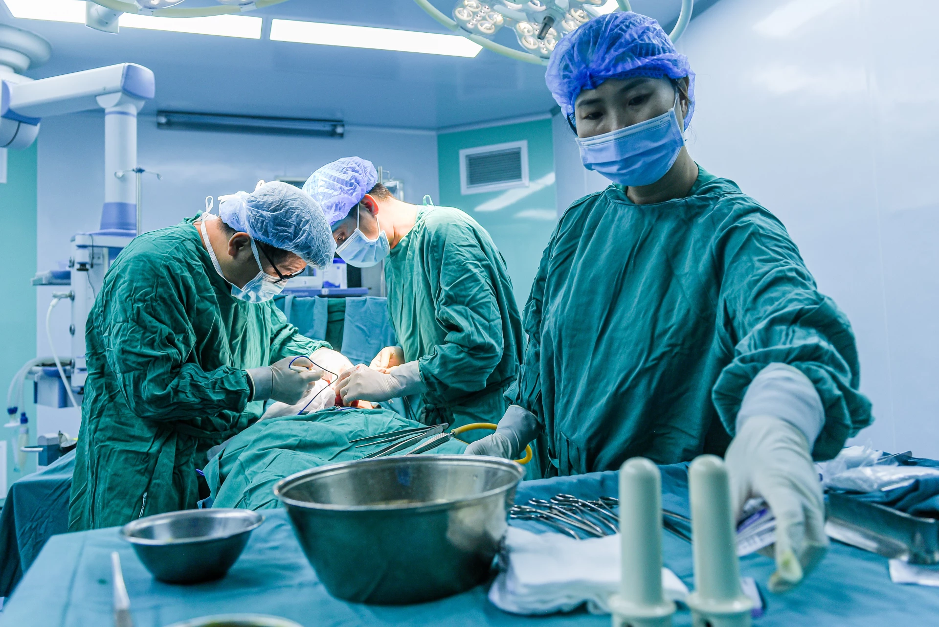 Phòng mổ đã sẵn sàng. Năm người trong ê-kíp nhanh chóng vào vị trí: Bác sỹ Kiên mổ chính với phụ mổ, bác sĩ gây mê, điều dưỡng và kỹ thuật viên dụng cụ.