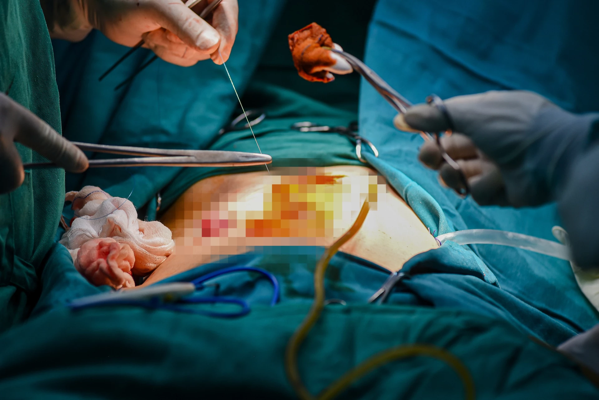 Dao điện rạch, khâu giữ... từng thao tác thực hiện chính xác, khẩn trương. Hơi nóng từ máy đốt điện bốc lên, hòa lẫn mùi khét đặc trưng của phẫu thuật.