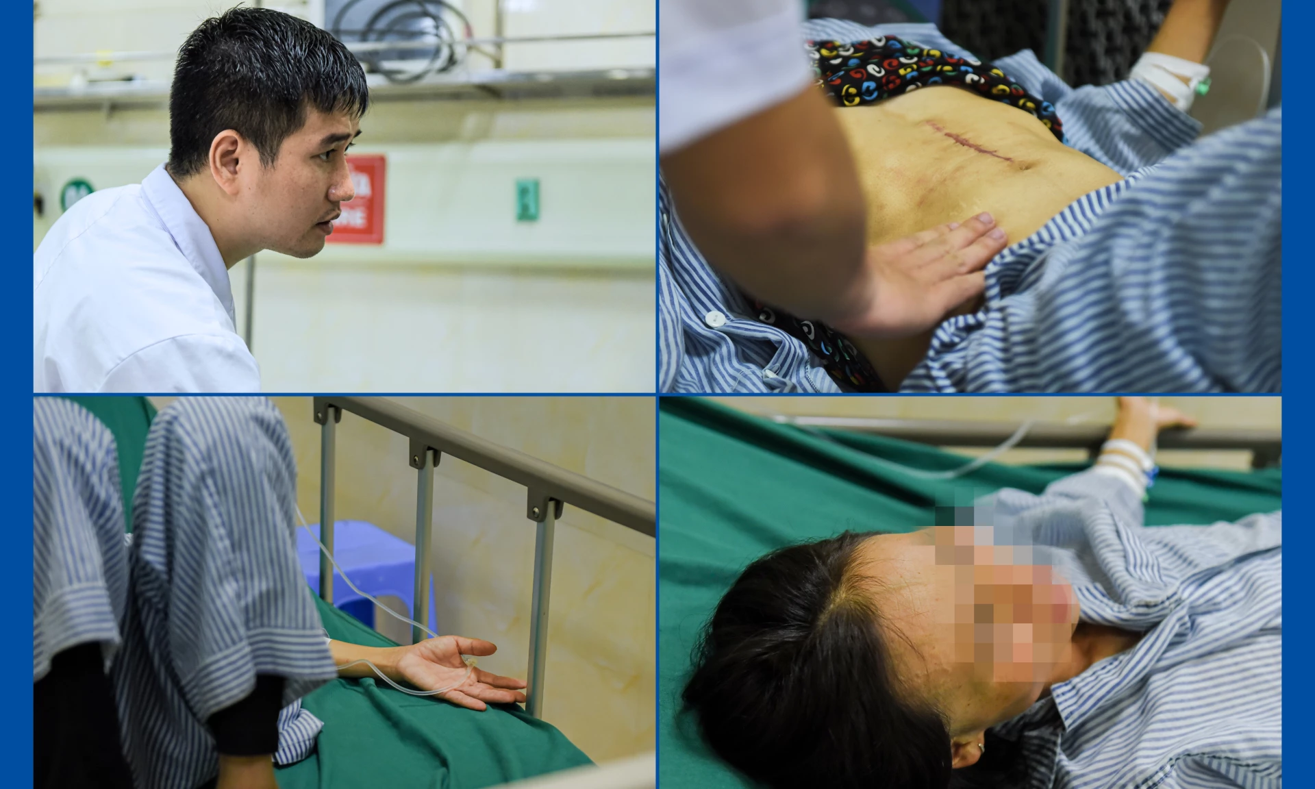 Khuôn mặt người mẹ tái nhợt, không còn cất nổi lời. Bác sĩ Lâm gọi người nhà vào trao đổi. Cậu con trai, giọng lo lắng, tiếp lời: “3 tháng trước mẹ em phẫu thuật cắt một phần dạ dày và khối u, gần một tuần nay thì liên tục đau bụng dữ dội. Mẹ gắng gượng không nổi nữa nên cả nhà vội đưa xuống từ Quản Bạ trong đêm.”