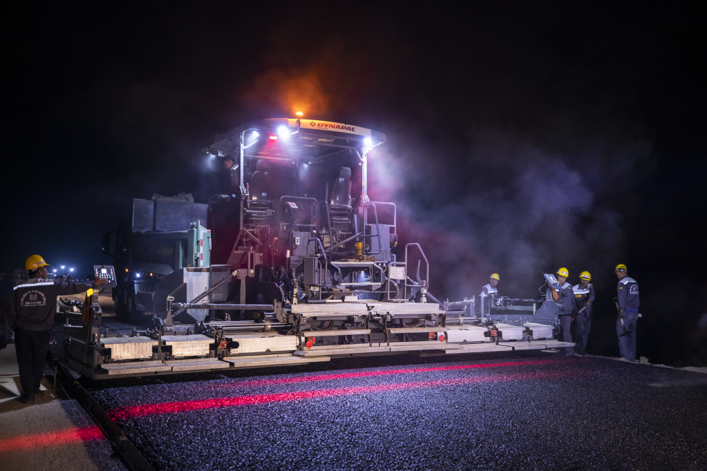 Đêm về, nền nhiệt độ của vùng núi 2 tỉnh Cao Bằng, Lạng Sơn giảm chỉ còn khoàng 10 độ C nhưng nhịp độ thi công trên công trường rất nhộn nhịp. Ánh đèn pha rực sáng, tiếng máy vang lên không dứt. Tại mũi thi công Km11 (xã Văn Lãng, tỉnh Lạng Sơn), nhà thầu huy động xe chở bê tông nhựa, triển khai dây chuyền thảm hiện đại với nhiều thiết bị lu lèn, tiến hành thảm bê tông nhựa mặt đường với chiều dài khoảng 150 m. Đây cũng là phân đoạn đầu tiên tiến hành thảm nhựa, đánh dấu mốc quan trọng trong quá trình thi công, khẳng định cam kết về tiến độ thông tuyến kỹ thuật trong tháng 12 này. Quy trình thảm nhựa nóng được tiến hành với yêu cầu kỹ thuật nghiêm ngặt. Các lớp lu lèn được thực hiện nhiều lượt để đảm bảo mặt đường đạt độ bằng phẳng và độ chặt theo tiêu chuẩn, quy chuẩn hiện hành. Sau khi thảm 150 m bê tông nhựa đầu tiên, nhà thầu, đơn vị tư vấn giám sát sẽ tiến hành đánh giá các thông số kỹ thuật, tiến tới thảm đại trà toàn tuyến.