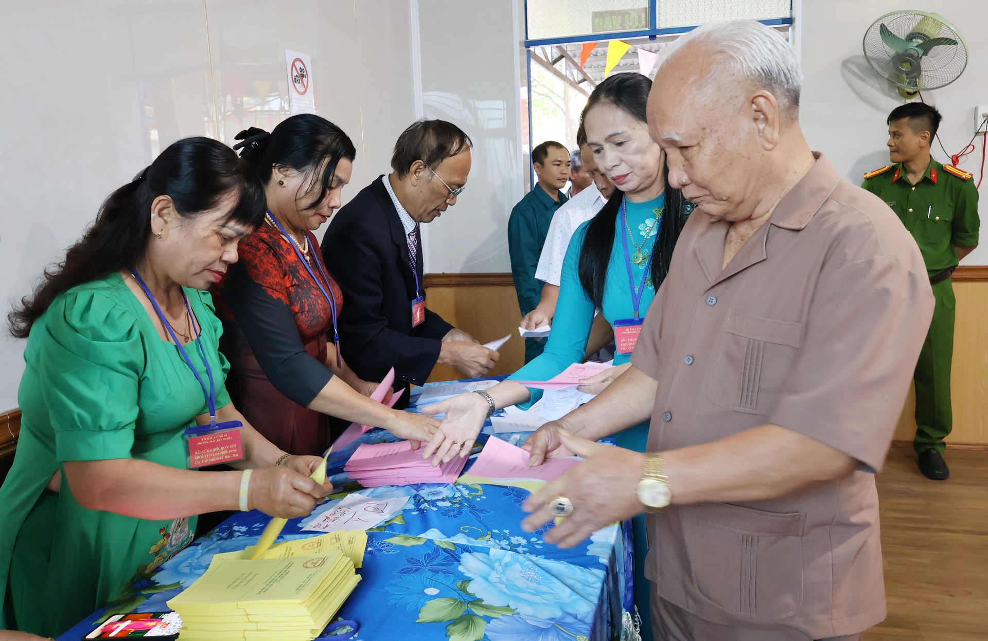 Lực lượng chức năng, trong đó có công an, dân quân và các tổ bảo vệ bầu cử được bố trí thường trực nhằm bảo đảm an ninh, an toàn tuyệt đối cho ngày bầu cử.
