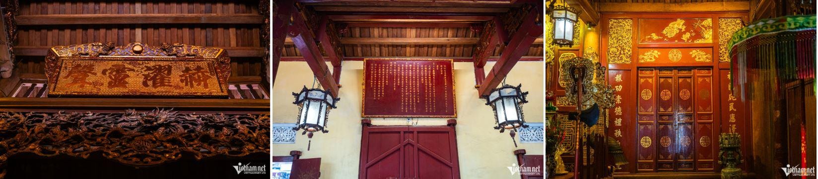 Ban thờ tự tại đền với hệ thống cửa võng, hoành phi và câu đối được sơn son thếp vàng. Ảnh: Nguyễn Huy