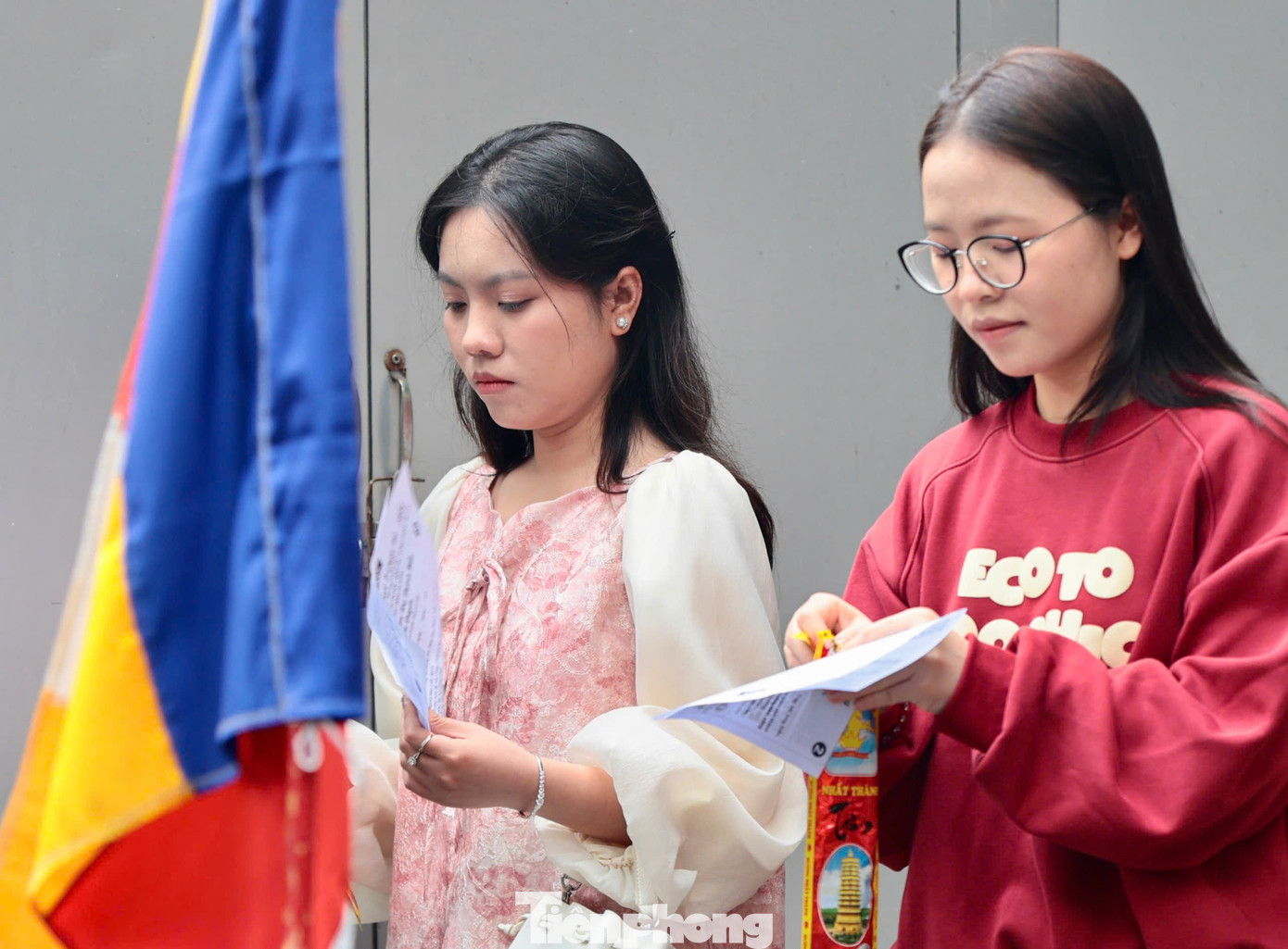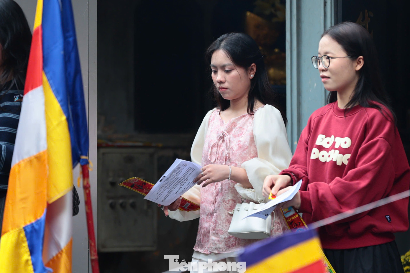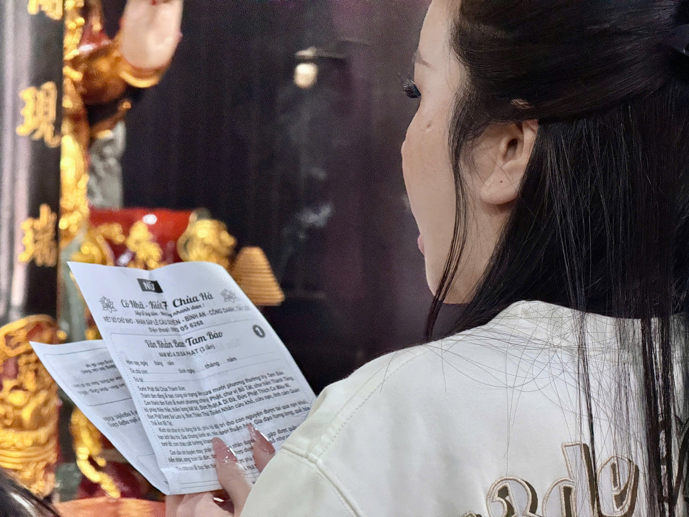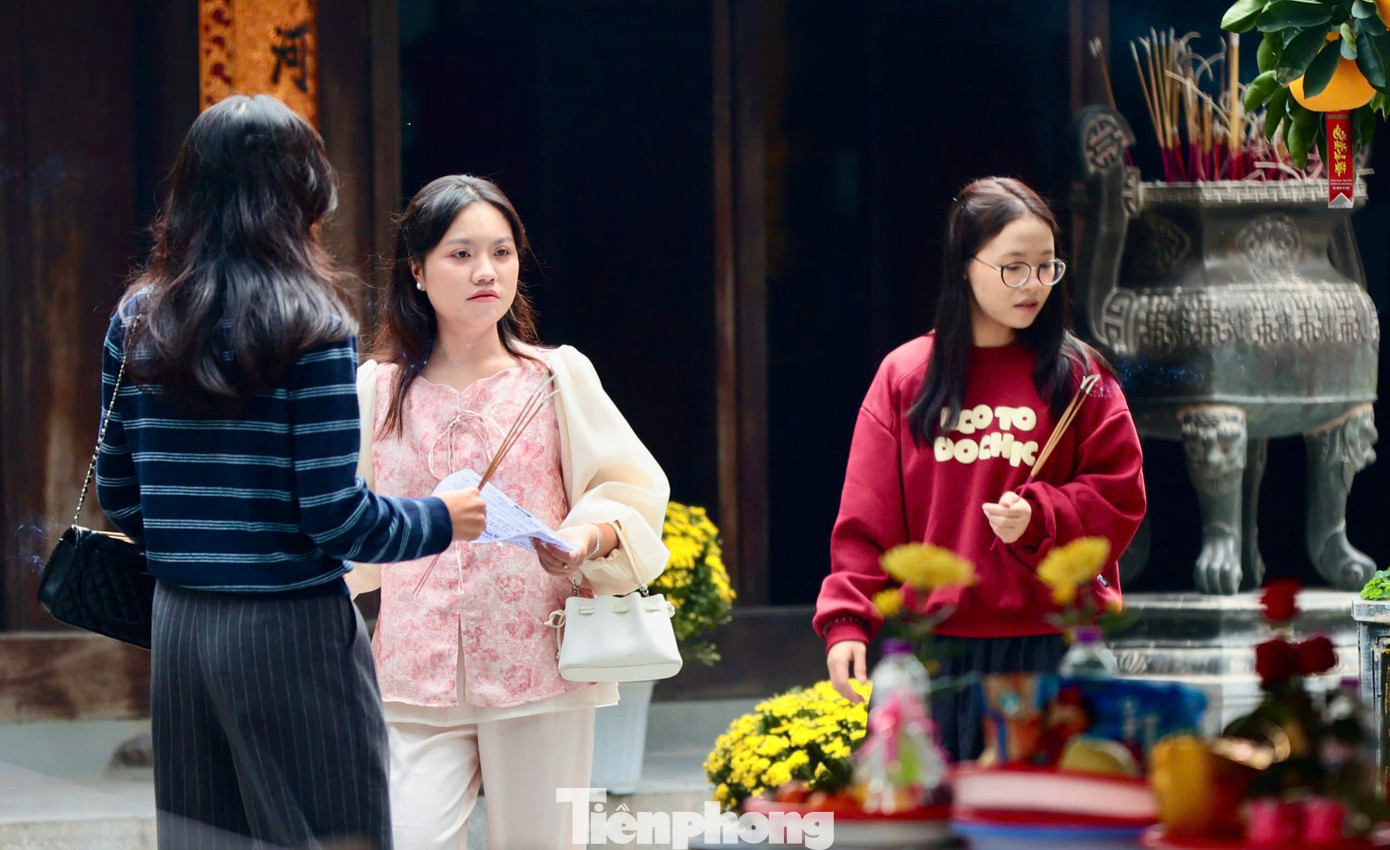 Chị Trịnh Thị Thu Hà (Tiên Dương, Hà Nội) đọc bài khấn cầu duyên. Chị Hà cho biết dịp này không chỉ đến chùa cầu tình cảm mà còn mong năm mới bình an, sự nghiệp thăng tiến cho cả gia đình. Chị Hà khẳng định không phải người mê tín, chỉ muốn gìn giữ nét đẹp trong dịp Tết cổ truyền.