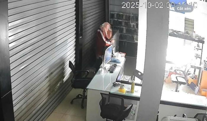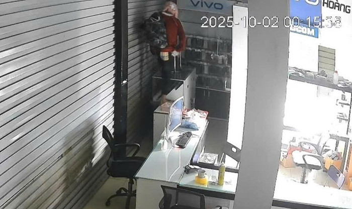 Camera an ninh ghi lại khoảnh khắc kẻ gian đột nhập tiệm điện thoại. Ảnh: Công an tỉnh Quảng Trị