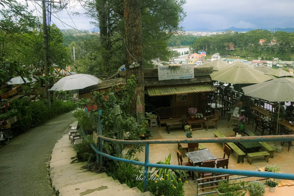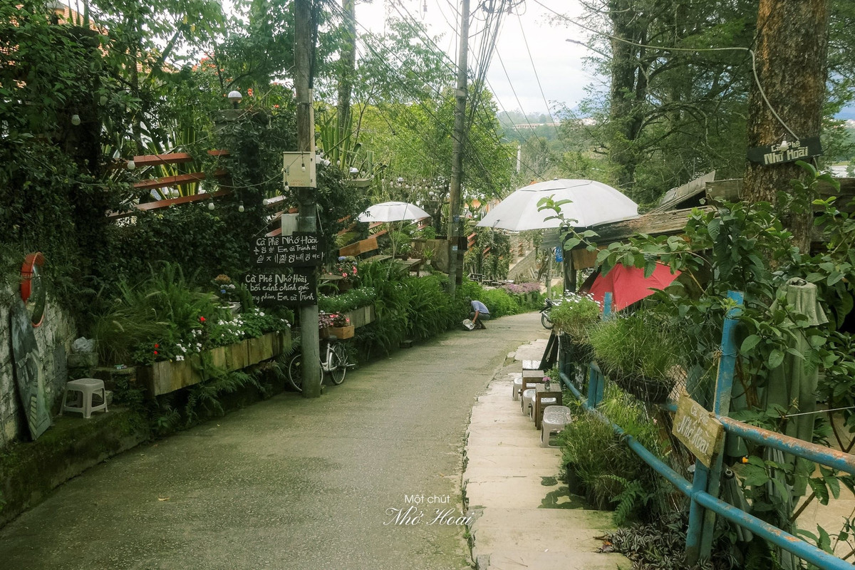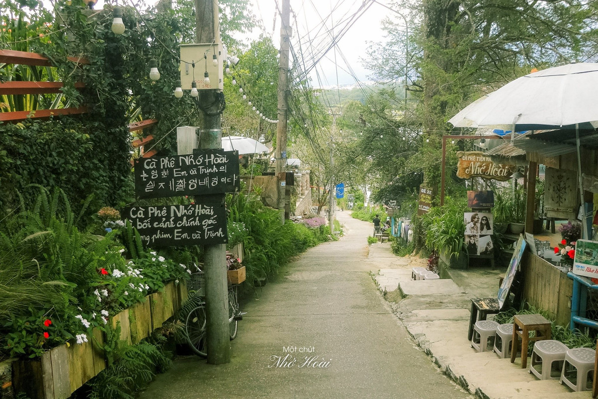 Một điểm nhấn khác không thể bỏ qua là quán cà phê kết hợp tiệm may Nhớ Hoài, nằm lưng chừng dốc. Ảnh SuMi