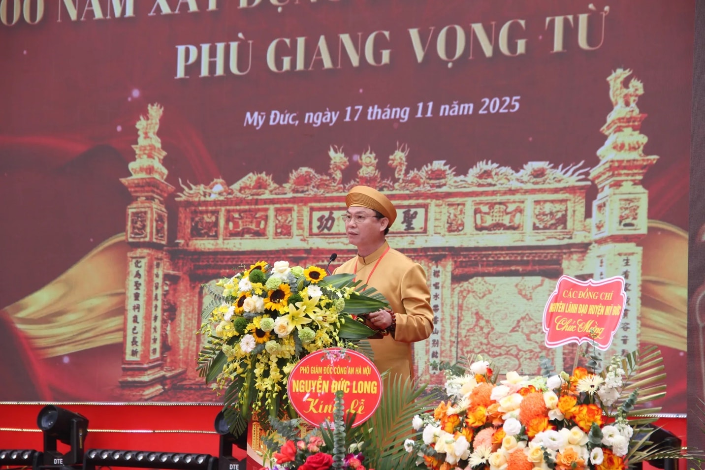 Phát biểu khai mạc Lễ kỷ niệm, Bí thư Đảng ủy xã Mỹ Đức Đặng Văn Cảnh đã ôn lại truyền thống, tri ân công đức của các bậc tiền nhân, hậu duệ dòng họ Trần và các thế hệ đã góp công, góp sức xây dựng, gìn giữ ngôi đền.