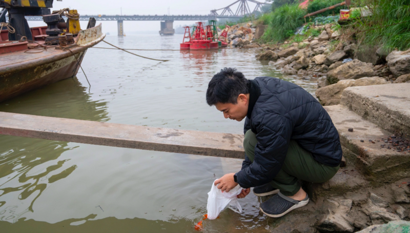 Mỗi năm, cứ đến ngày 23 tháng Chạp, khi người dân ở các địa phương làm lễ tiễn ông Công, ông Táo về trời, nhiều dòng sông, ao hồ tại các đô thị lại “tái diễn” cảnh cá chép được thả xuống nước, kèm theo đó là túi nilon, hộp xốp, tro vàng mã và đủ loại rác thải sinh hoạt.