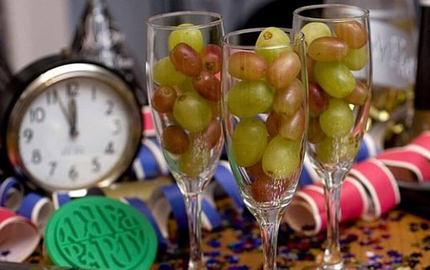 Ăn đủ 12 trái nho trong 12 tiếng chuông thời khắc giao thừa là phong tục từ Tây Ban Nha.