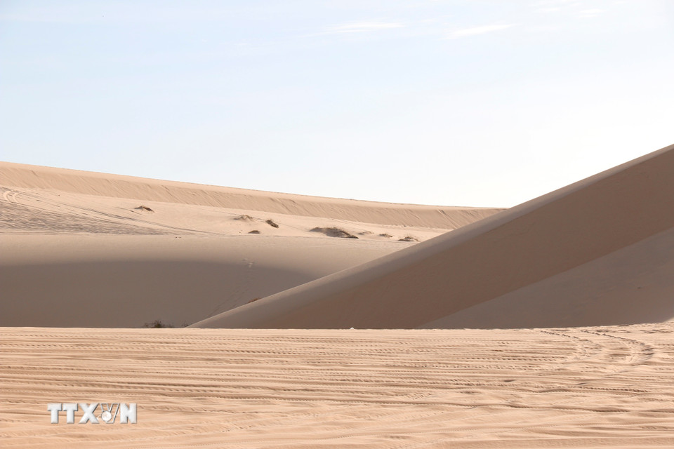 Những đồi cát cao vút trải dài vô tận với nhiều hình dạng độc đáo khiến Bàu Trắng được ví như “tiểu sa mạc Sahara” ở Việt Nam. (Ảnh: Nguyễn Thanh/TTXVN)