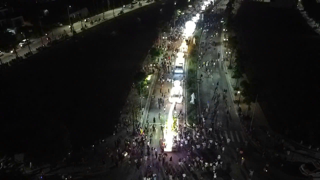 Đoạn đường chính dành cho các xe rước đèn dài hơn 1 km tại trục chính và phố đi bộ Danko. Ảnh: Toán Nguyễn.