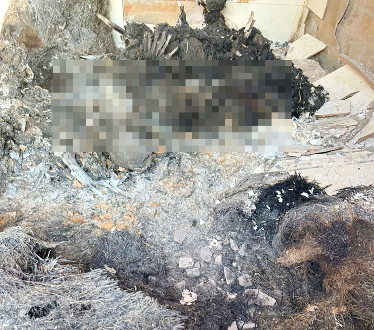 Hiện trường có nhiều rơm bị đốt cháy.