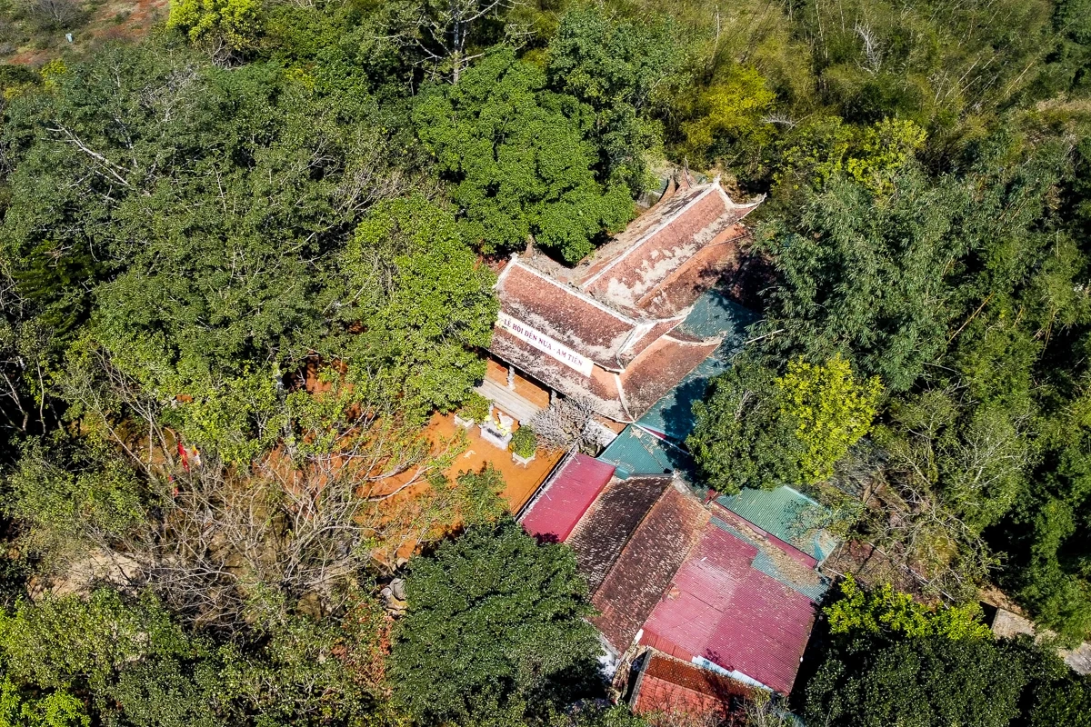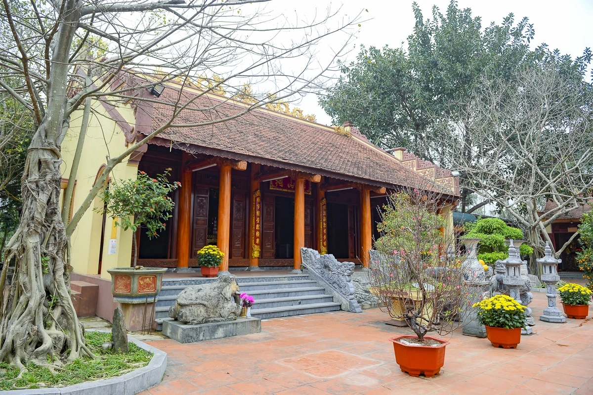 Không gian bên trong đền Nưa được dọn dẹp sạch sẽ, trang trí thêm các chậu hoa cúc, mở ra thanh tịnh, trầm mặc. Kiến trúc đền mang đậm phong cách truyền thống với mái ngói đỏ, chạm khắc hình rồng tinh xảo.