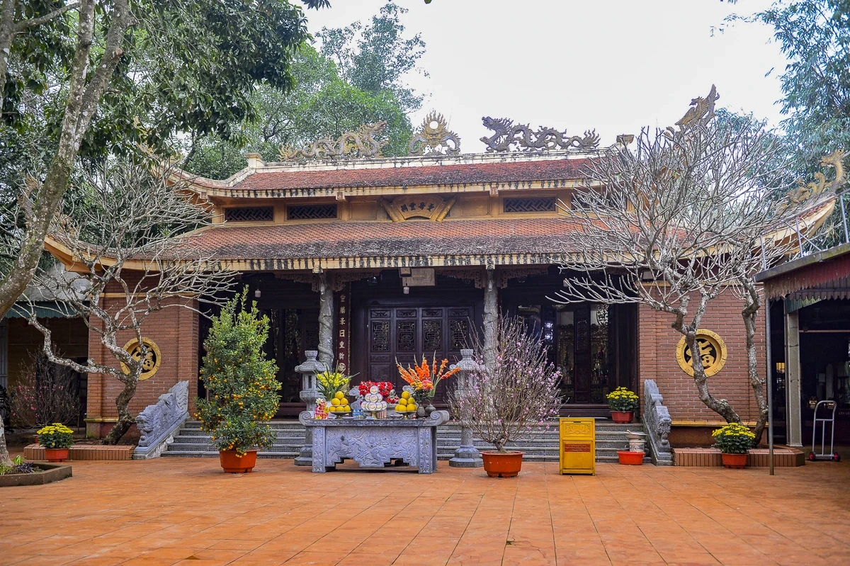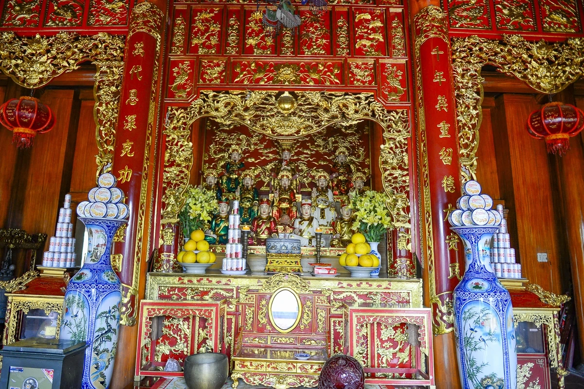Bên trong nội điện, ban thờ được bài trí trang nghiêm, sơn son thếp vàng lộng lẫy. Hoa tươi, mâm quả được nhân viên Ban Quản lý chuẩn bị chu đáo, tạo không gian thờ tự trang nghiêm, ấm cúng.