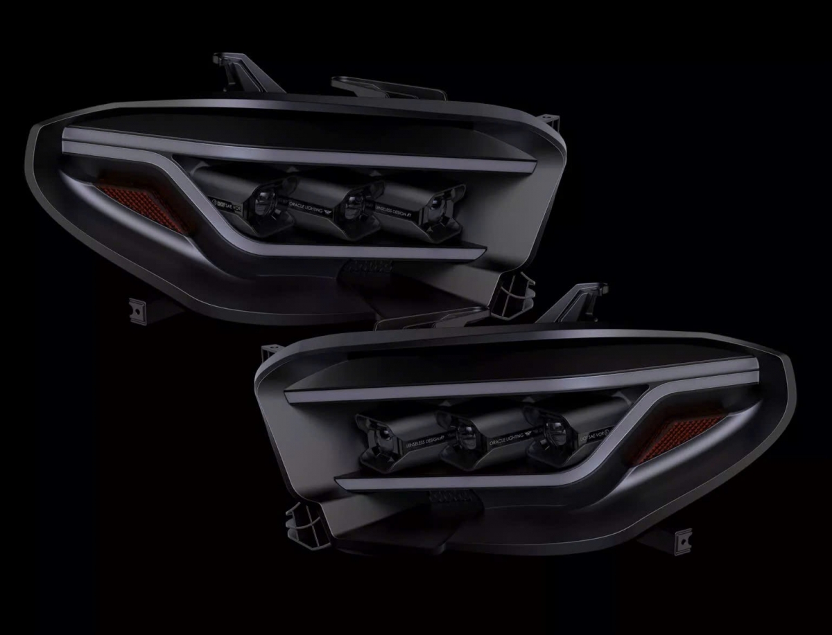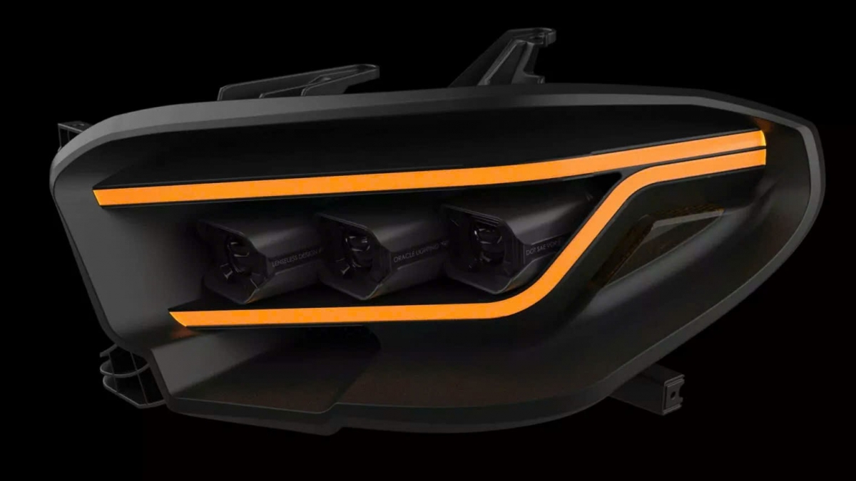 Oracle Lighting - thương hiệu nổi tiếng trong lĩnh vực chiếu sáng ô tô - đã khiến giới mộ điệu kinh ngạc khi ra mắt mẫu đèn pha LED không kính (lensless LED headlight) đầu tiên trên thế giới tại SEMA Show 2025. Khác với những cụm đèn truyền thống vốn có lớp kính ngoài để bảo vệ, mẫu đèn mới này loại bỏ hoàn toàn chi tiết đó, thay bằng các module LED được bịt kín trong cấu trúc đạt chuẩn IP68, giúp chống bụi và nước hiệu quả.