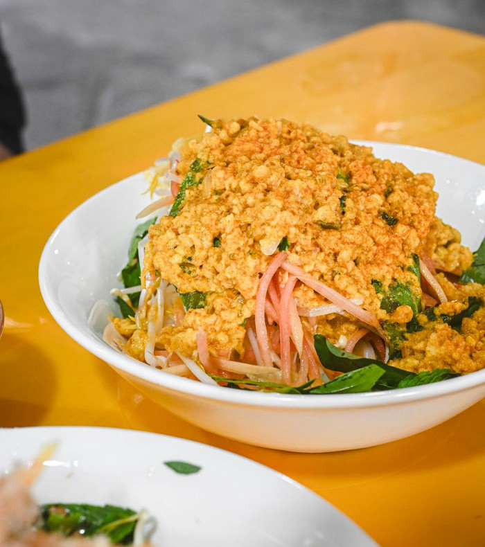 Đến Phú Quốc, du khách dễ dàng bắt gặp những quán bún kèn nhỏ nằm nép mình ở các khu dân cư, chợ địa phương hoặc trên những con đường trung tâm. Mỗi nơi lại có một biến tấu riêng, nhưng đều giữ được linh hồn của món ăn: cá nhàu hoặc cá ngân được xay nhuyễn, xào với nghệ và gia vị, sau đó chan cùng nước dùng nấu từ nước cốt dừa.
