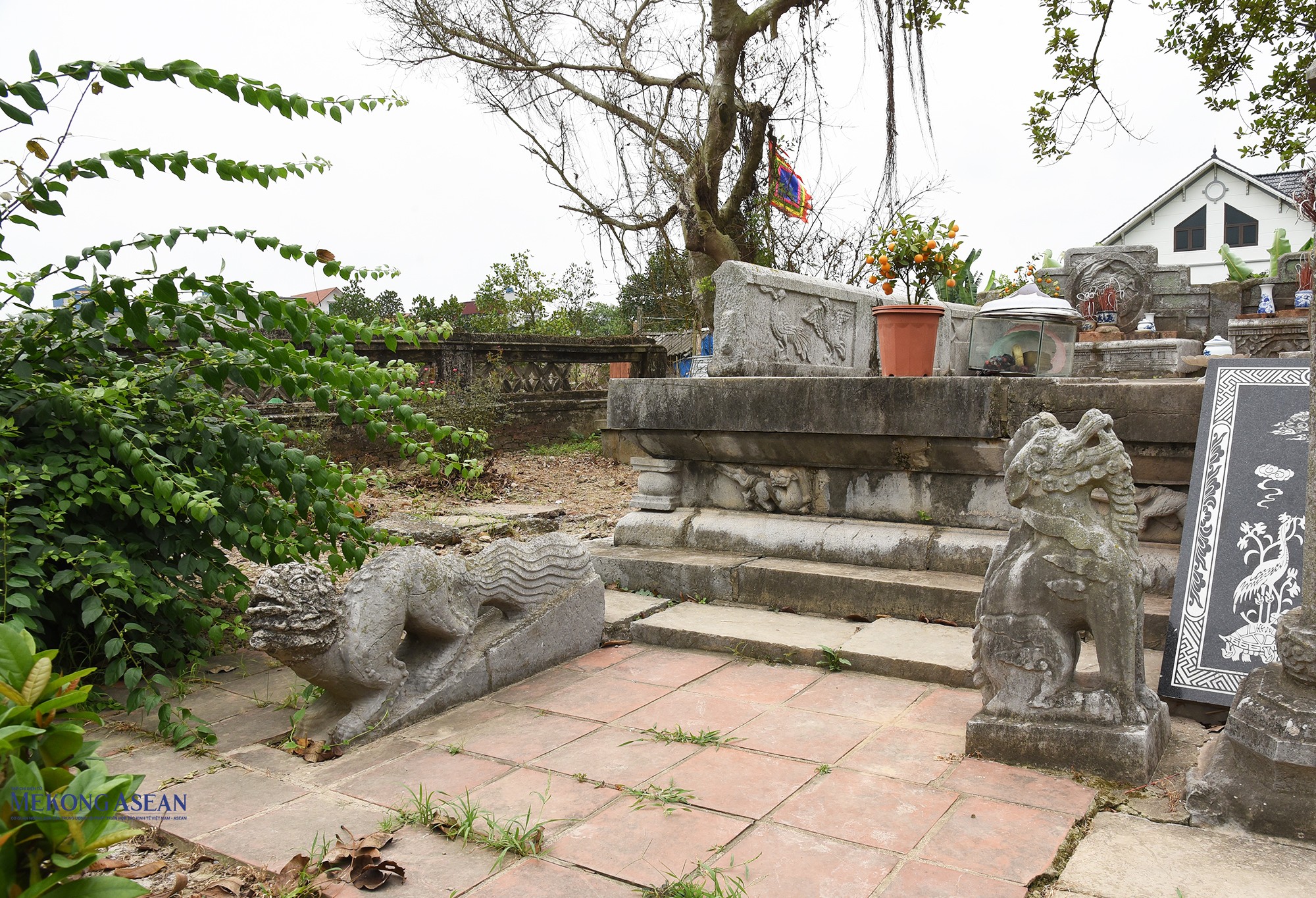 Tượng các linh vật bằng đá đặt bên trái phía trước sập thờ. Ảnh: Mekong ASEAN.
