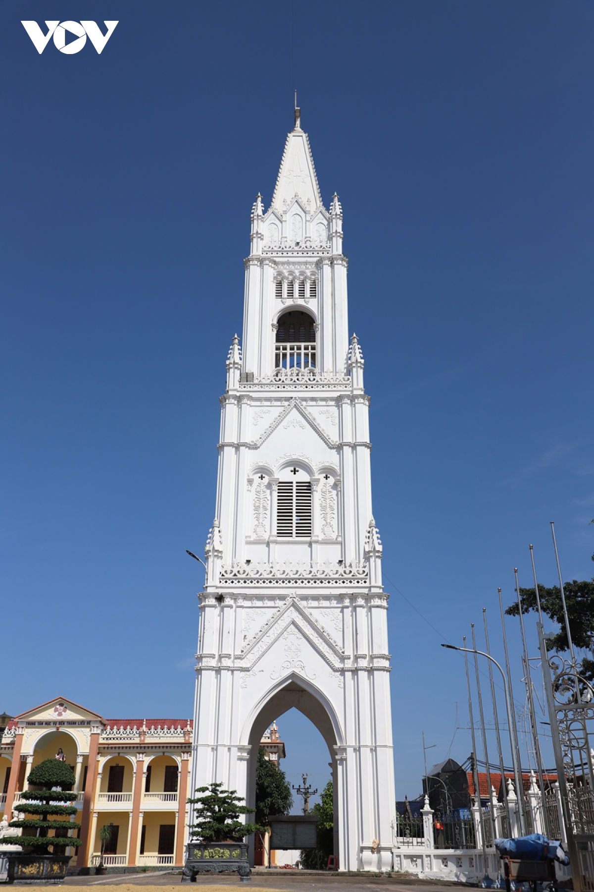 Cận cảnh tháp chuông 44 mét - điểm nhấn kiến trúc mang dấu ấn nghệ thuật và đức tin của Đền Thánh Liễu Đề.