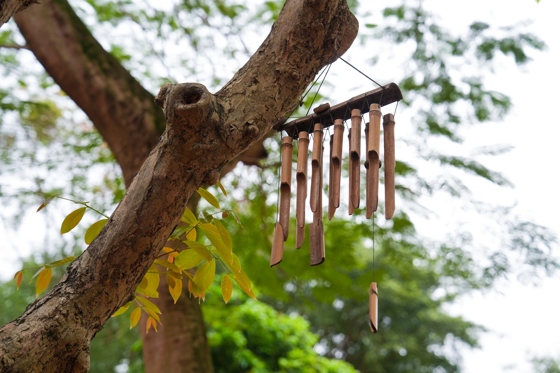 Những chiếc chuông gió bằng gỗ là hệ thống định vị âm thanh dành cho các trẻ em đặc biệt về thị giác.