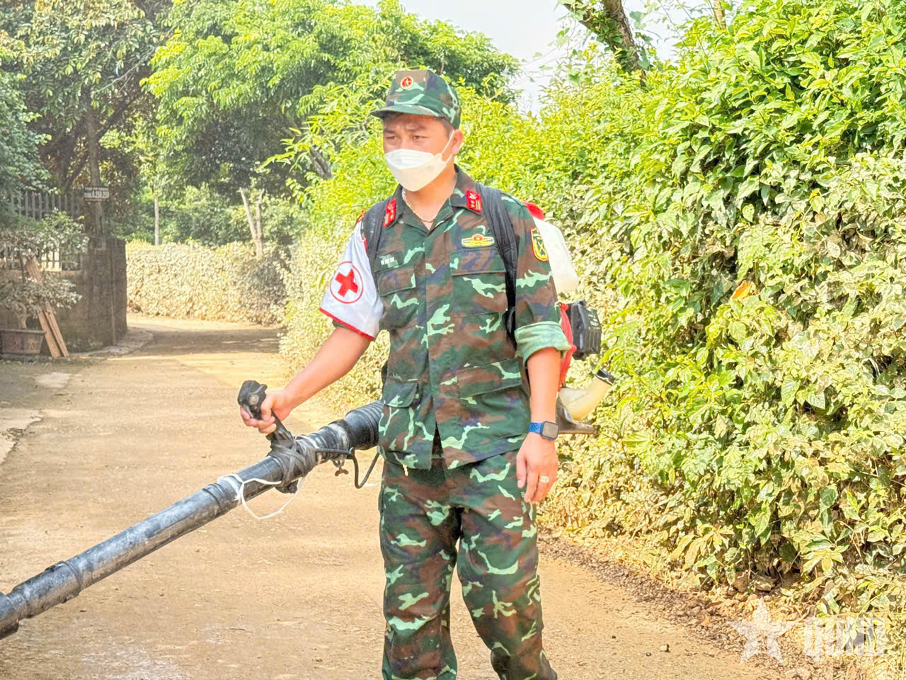 Cán bộ, y bác sĩ Bệnh viện Quân y 354 đi vào các khu vực nước rút để hỗ trợ nhân dân ngăn ngừa dịch bệnh.
