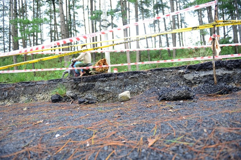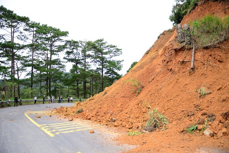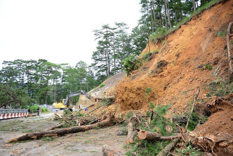 Theo thống kê ban đầu, khu vực sạt lở kéo dài khoảng 50m, cao gần 20m. Những gốc thông lớn bị bật rễ đang được cắt ngắn và di chuyển khỏi mặt đường. Tuy nhiên, do mưa vẫn chưa dứt, nguy cơ tiếp tục trượt sườn núi còn rất cao.