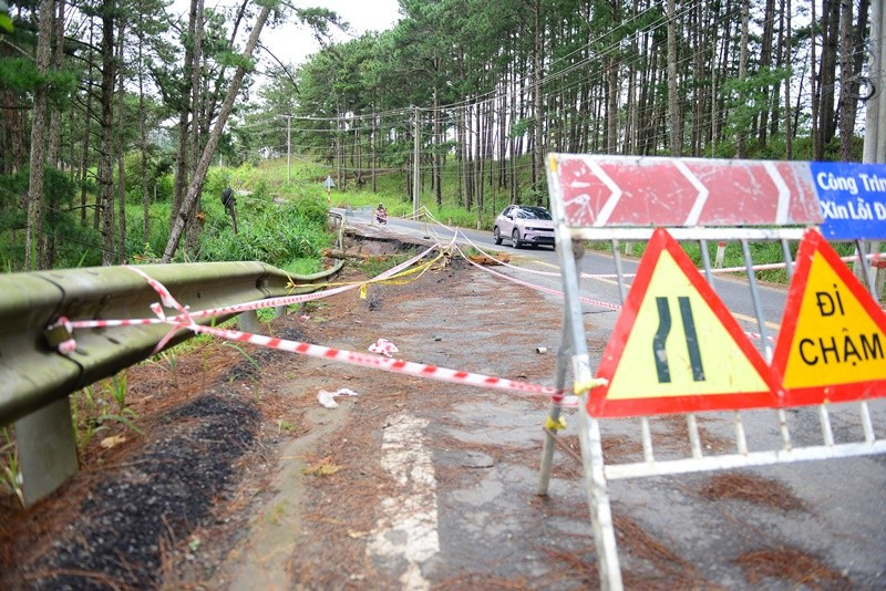 Một số điểm mặt đường bị lún sâu hơn 40cm, lực lượng chức năng đã căng dây, cắm biển cảnh báo nguy hiểm. Ông Nguyễn Vĩnh Tấn, người dân xã D’ran cho biết, việc phong tỏa đèo đã ảnh hưởng lớn đến việc sản xuất nông nghiệp, tuy nhiên an toàn là trên hết. “Tôi có rẫy cà phê ở khu vực núi Min, cách hiện trường không xa. Giờ muốn lên vườn phải đi vòng qua quốc lộ 27 rồi trở lại Đà Lạt, quãng đường xa thêm hơn 60km”, ông Tấn chia sẻ.