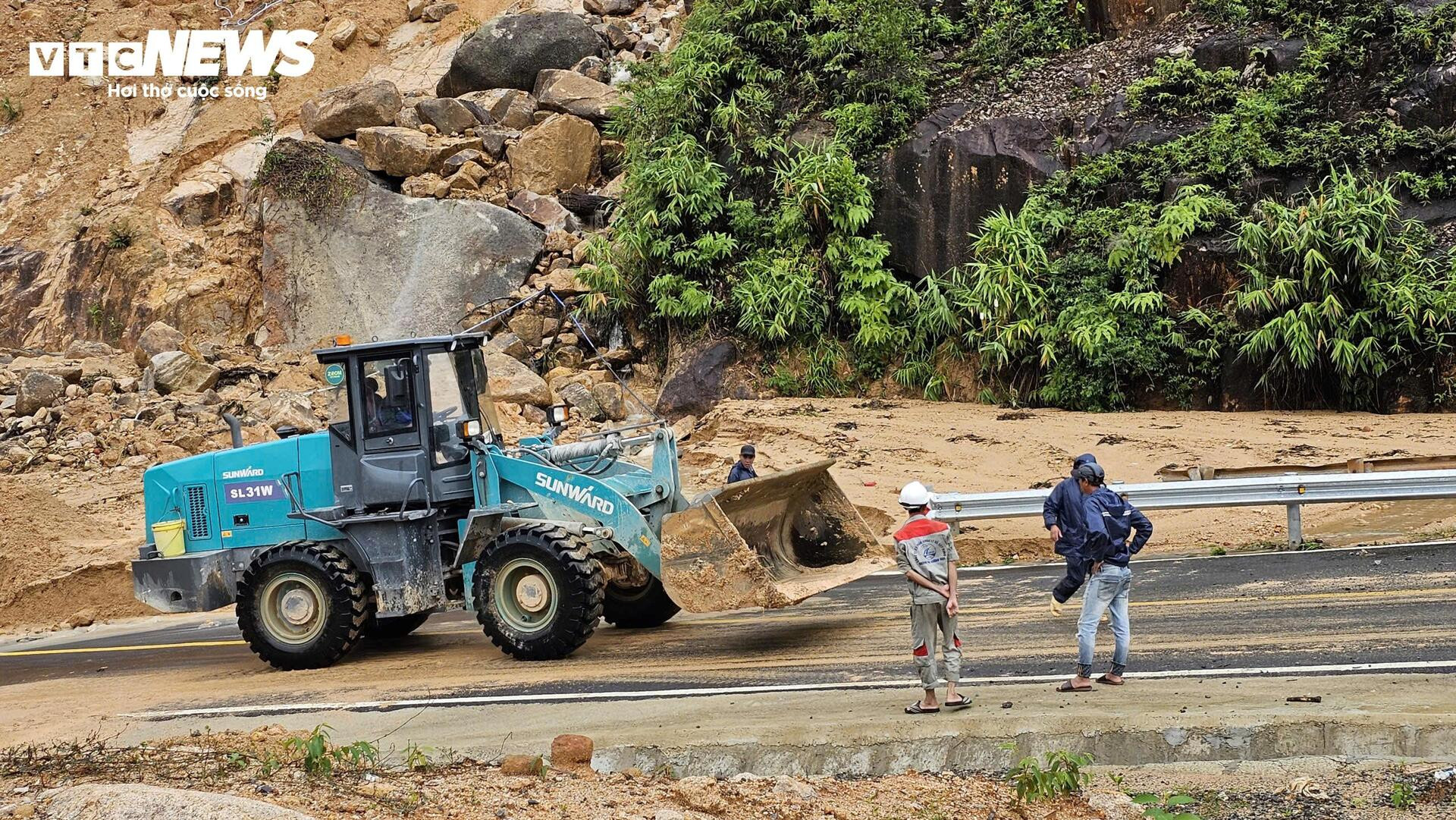 Nhiều phương tiện được điều động đến hiện trường để dọn hốt điểm sạt lở mới.