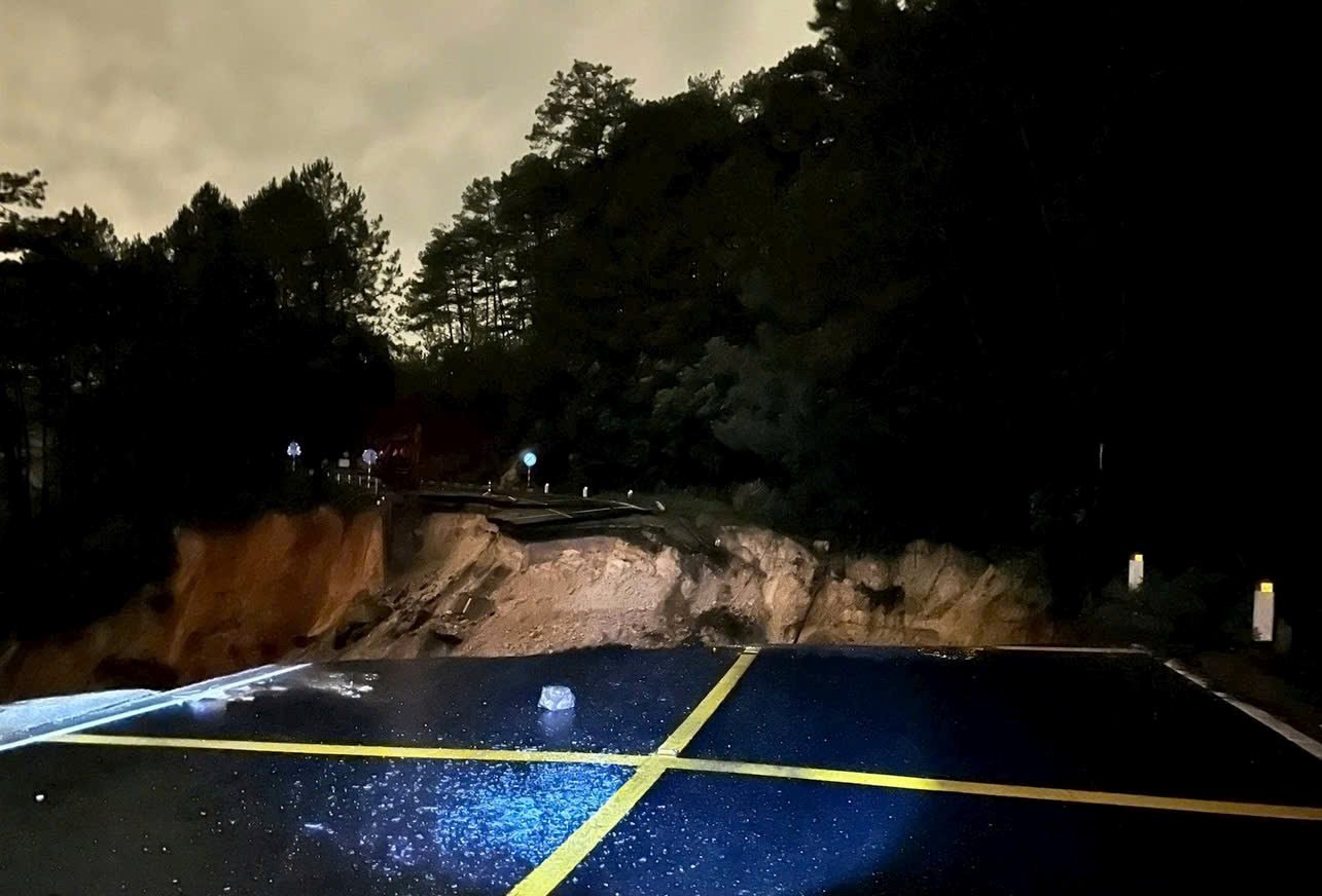 Mặt đường đèo Mimosa bị cuốn trôi.