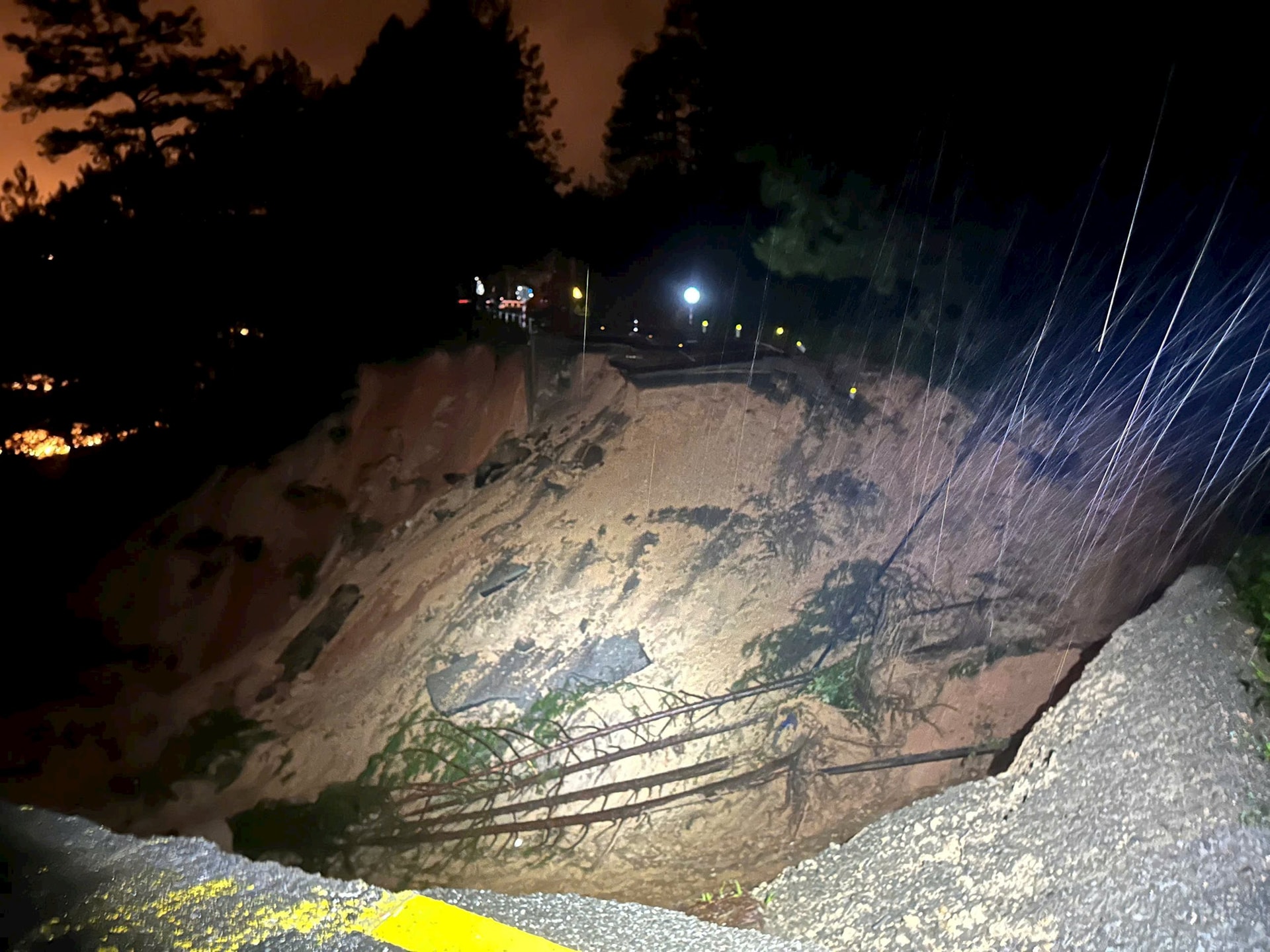 Hố sâu hơn 30m với cây cối bị cuốn trôi và dòng nước vẫn chảy bên dưới