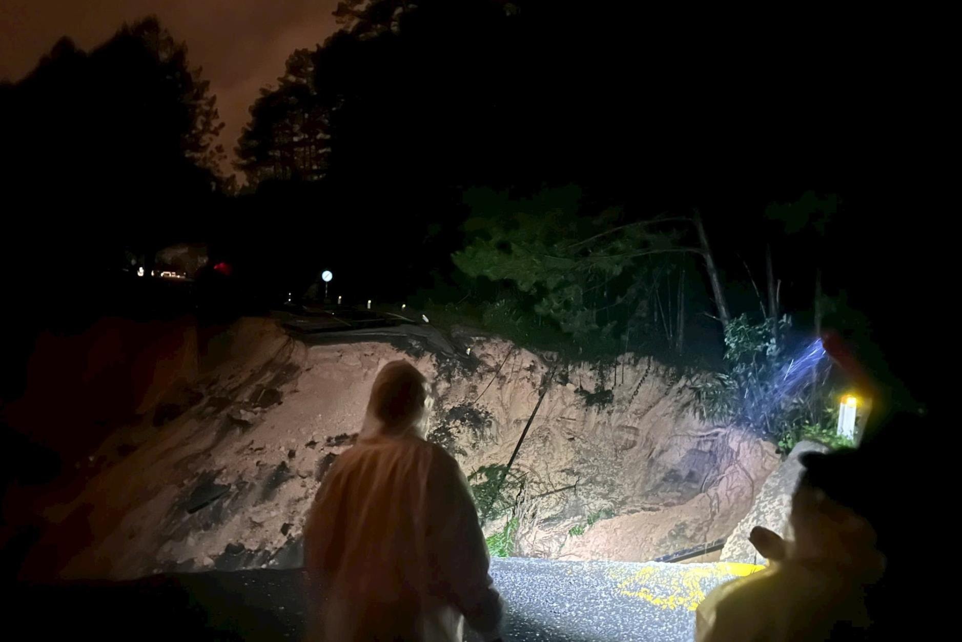 Sụt lún trên đèo Mimosa tạo thành hố sâu và rộng, chia tách toàn bộ mặt đường đèo