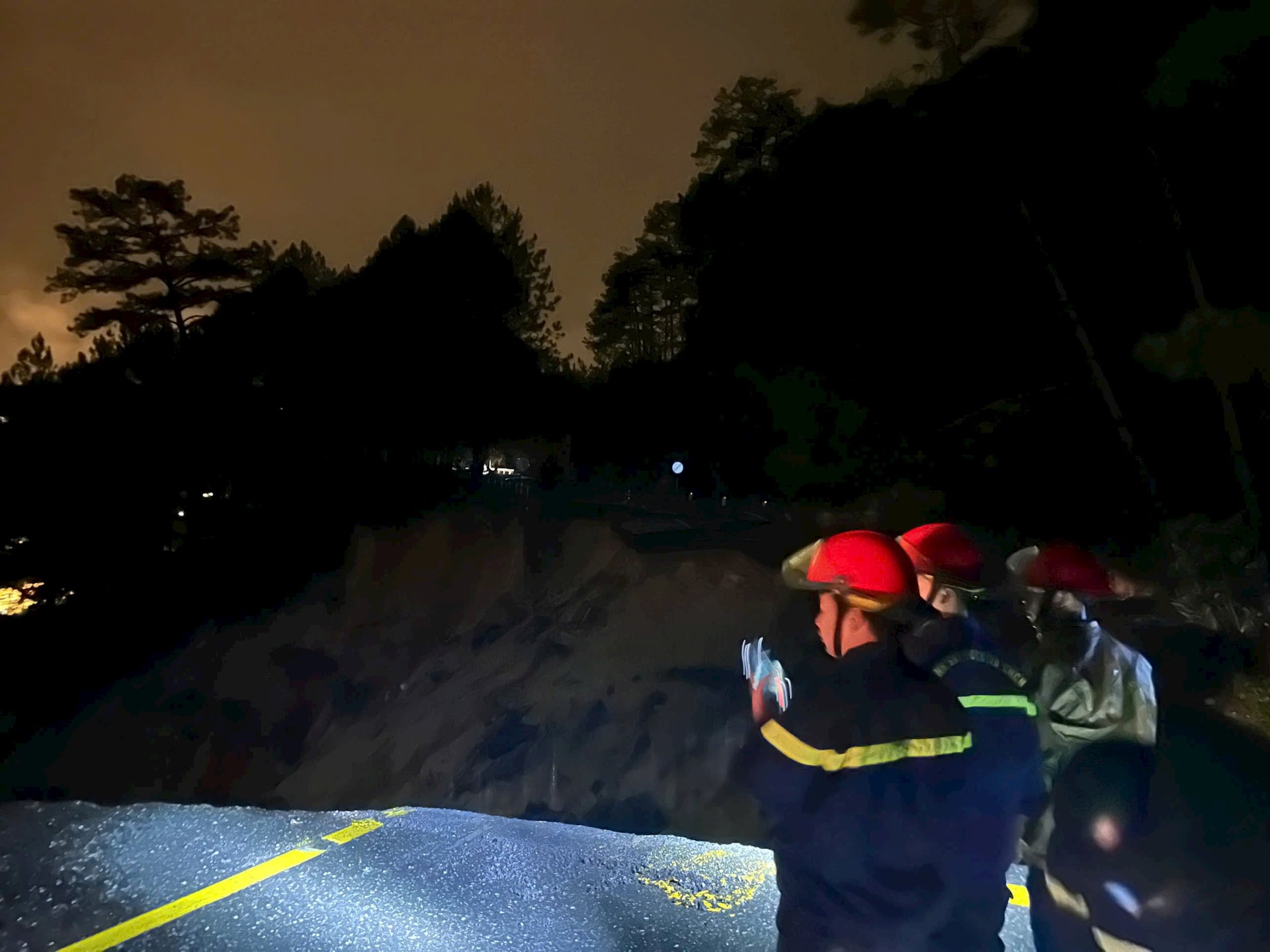 Vào thời điểm xảy ra vụ việc, một vài phương tiện; trong đó, có chiếc xe khách loại 45 chỗ ngồi, đã kịp thời dừng ngay miệng vực đứt gãy. Sau đó, lực lượng cứu hộ đã kịp thời ứng cứu đưa chiếc xe ra khỏi vị trí nguy hiểm.