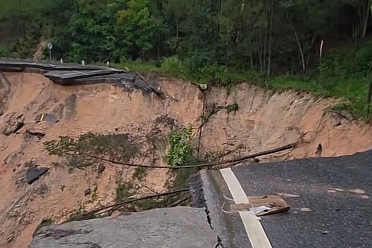 Theo ghi nhận, cả đoạn đường rộng gần 50m bất ngờ sụt xuống tạo thành hàm ếch sâu khoảng 30m, kéo dài hơn 100m. Vị trí đứt gãy nằm ngay khu vực đường dốc, quanh co, khiến nguy cơ tai nạn đặc biệt lớn.