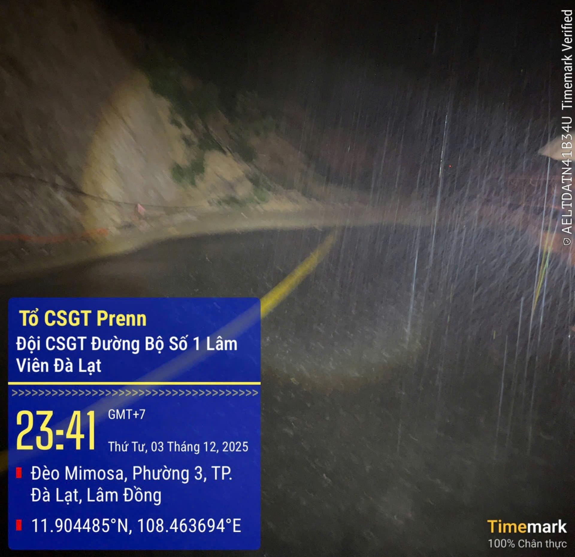 Để đảm bảo an toàn, ngay trong đêm, Phòng Cảnh sát giao thông, Công an Lâm Đồng đã phối hợp với các đơn vị liên quan phân luồng, tạm thời hướng dẫn các phương tiện ngưng lưu thông lên xuống hai đoạn đầu đèo.