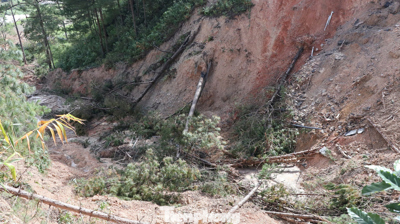 Cây cối xung quanh điểm sạt lở ngã đổ hàng loạt.