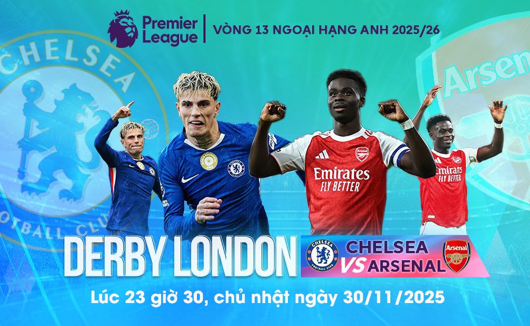 Trận derby London giữa Chelsea và Arsenal tại Vòng 13 Premier League 2025 - 2026, diễn ra lúc 23h30’, chủ nhật ngày 30/11 trở thành tâm điểm của vòng đấu này. Trong bối cảnh cả 2 đội đang thể hiện phong độ ấn tượng, cuộc chạm trán tại Stamford Bridge không chỉ là màn so tài mang tính danh dự mà còn là bước ngoặt quan trọng trong cuộc đua ở nửa đầu mùa giải. Với lối chơi tấn công tốc độ và sự quyết liệt, Chelsea và Arsenal đang sẵn sàng tạo nên một đêm bóng đá rực lửa giữa lòng London.