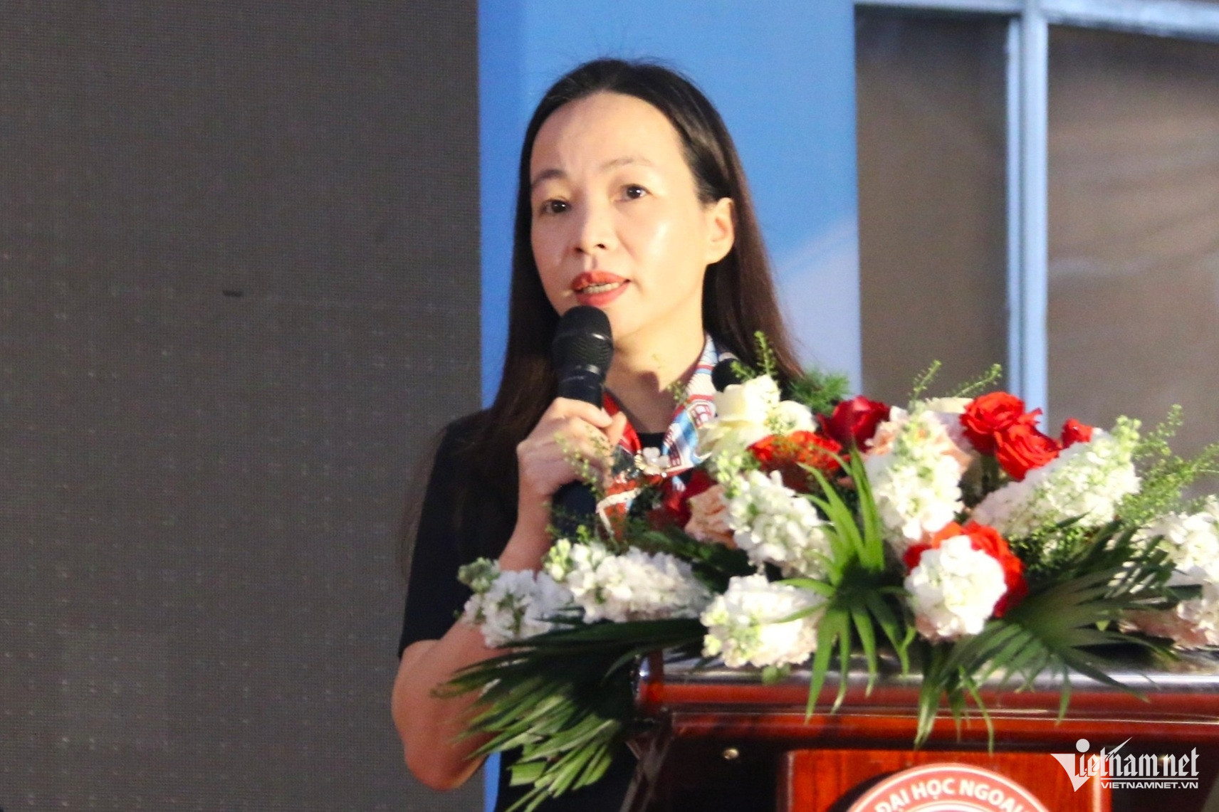 PGS.TS Phạm Thu Hương, Hiệu trưởng Trường ĐH Ngoại thương phát biểu tại Ngày hội tuyển sinh năm 2026. Ảnh: Thanh Hùng. .