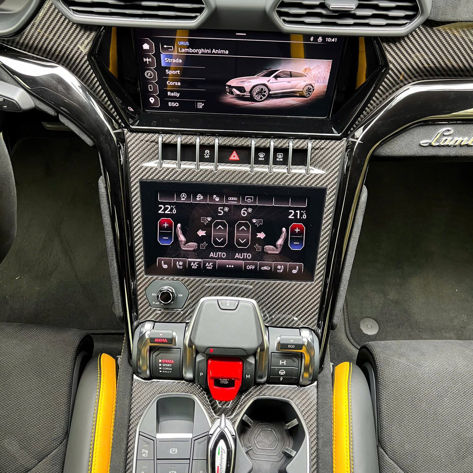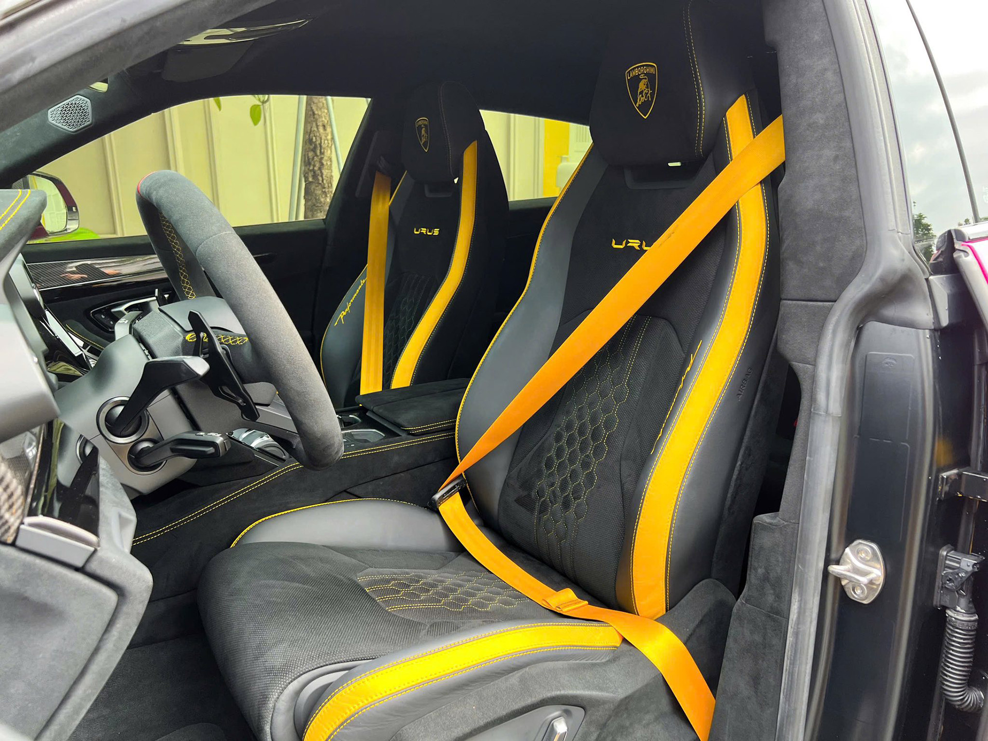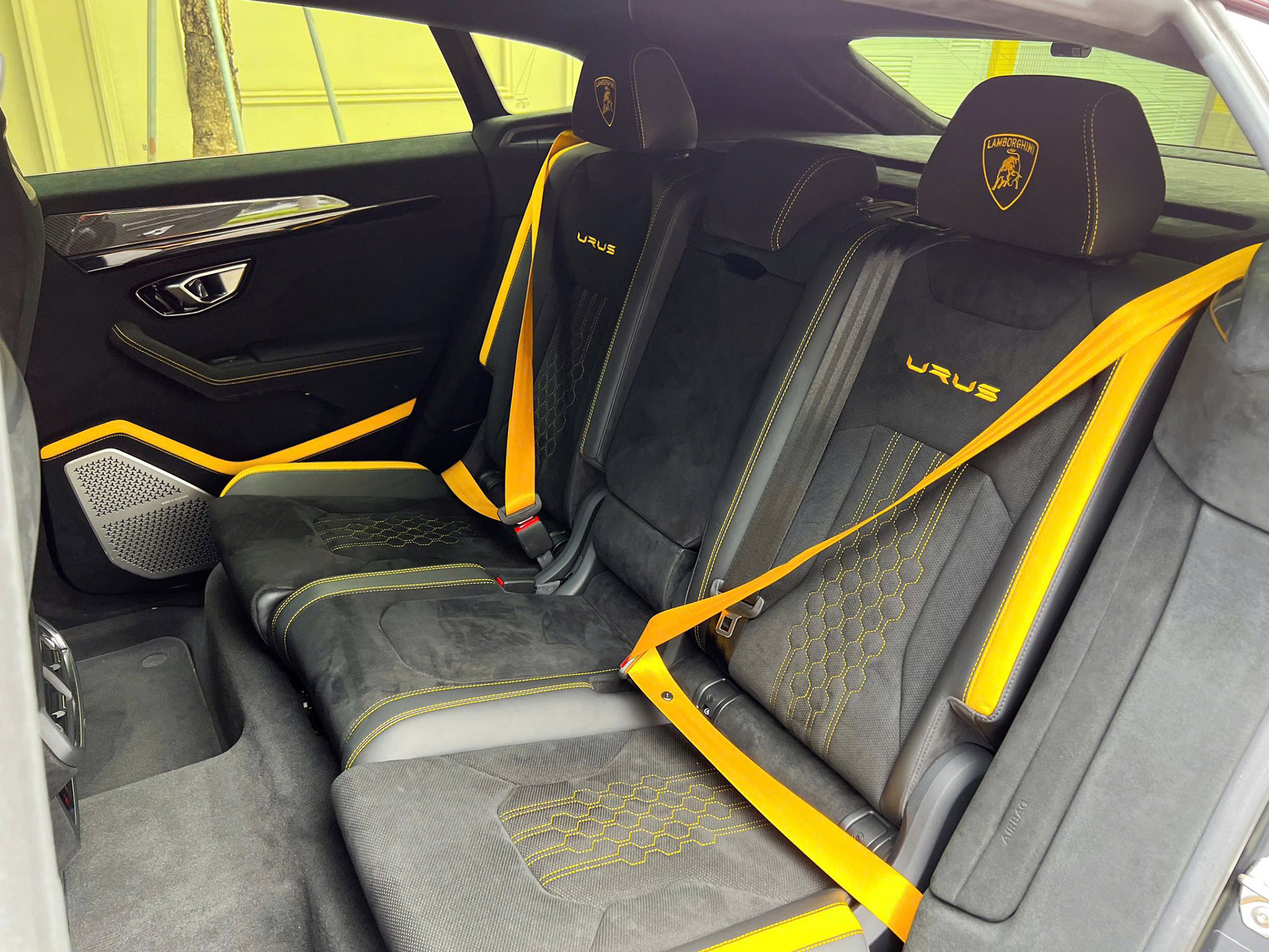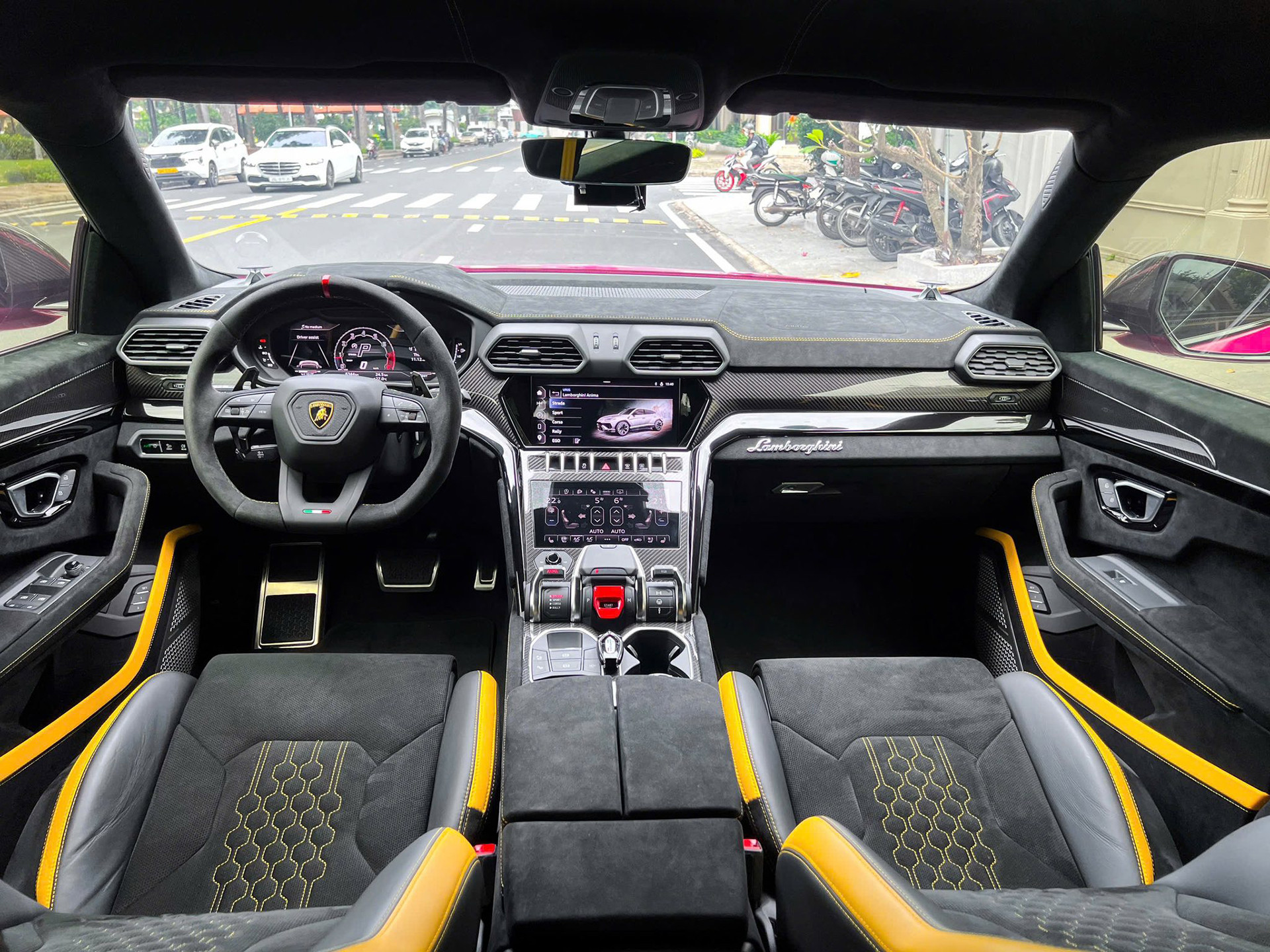 Nội thất chiếc Urus Performante này dùng tông màu đen chủ đạo, kết hợp cùng màu vàng ở đường viền và đường chỉ khâu. Ghế ngồi thể thao bọc da cao cấp và vật liệu Alcantara. Hàng ghế sau gồm 3 chỗ ngồi, với tựa tỳ tay di động. Vô-lăng bọc hoàn toàn bằng vật liệu Alcantara.