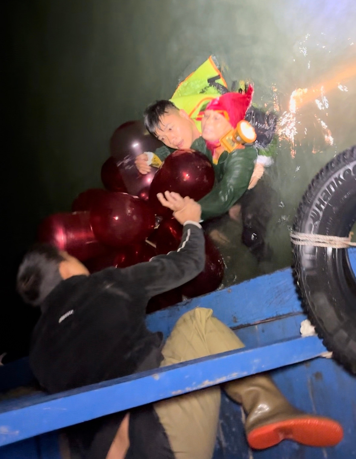 Các đây hơn 2 tuần, lực lượng chức năng cũng cứu thành công 3 người dân Lý Sơn sau hai ngày trôi dạt trên biển giữa thời điểm bão Kalmaegi hoành hành. Cụ thể, chiều 6/11, anh D.Q.C. (SN 1981, trú tại đặc khu Lý Sơn, Quảng Ngãi) nhảy xuống biển tự tử và được ông Phan Duy Quang cùng anh Lê Văn Sanh chèo thúng ra cứu.