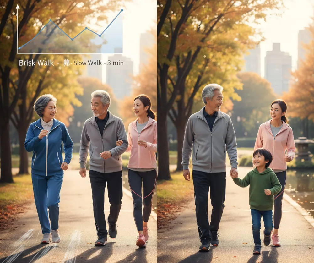 Nghiên cứu trên hơn 200 người lớn (tuổi trung bình 63) cho thấy đi bộ ngắt quãng giúp cải thiện huyết áp đáng kể, sức mạnh cơ đùi và khả năng hiếu khí tối đa.