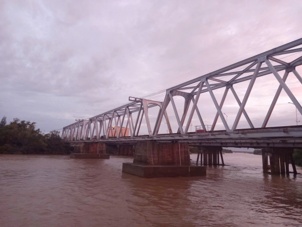 Cầu đường sắt Sông Chùa - nơi hai người đi bộ trên đường sắt dẫn đến vụ tai nạn. Ảnh: Việt Tường.