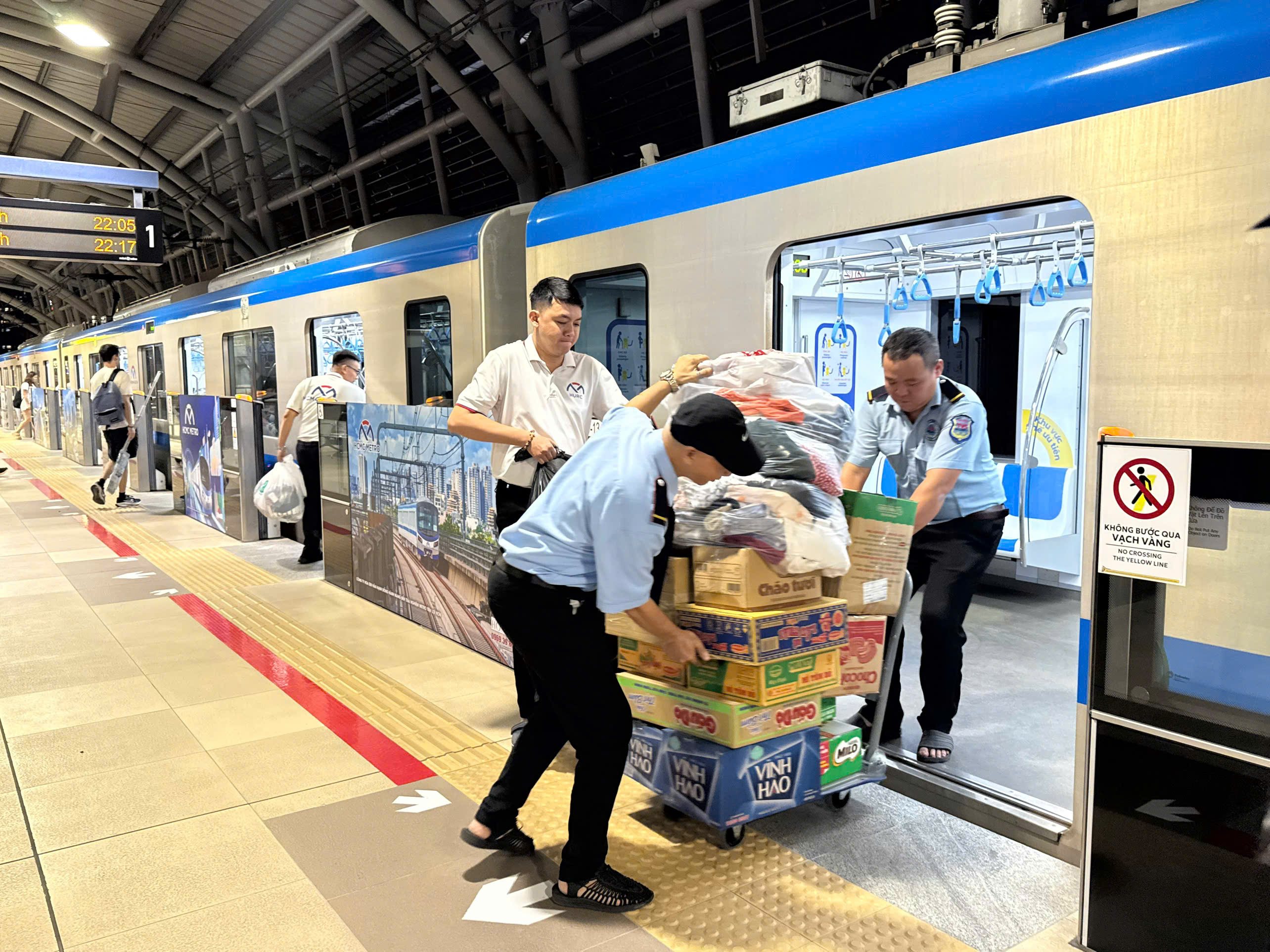 Ga metro tiếp nhận và chở các chuyến hàng cứu trợ từ 14 điểm ga về nơi tập kết
