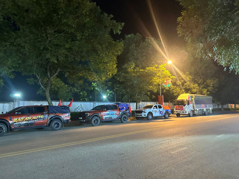 Chiều 24/11, đoàn của anh Thành gồm 14 người xuất phát từ Thái Nguyên hướng về Đắk Lắk. Với 3 xe bán tải và 1 xe tải to, đoàn của anh chở hơn 20 tấn hàng cứu trợ là những nhu yếu phẩm cần thiết như mỳ tôm, gạo, bánh chưng, nước lọc, thuốc men... hỗ trợ bà con vùng lũ.