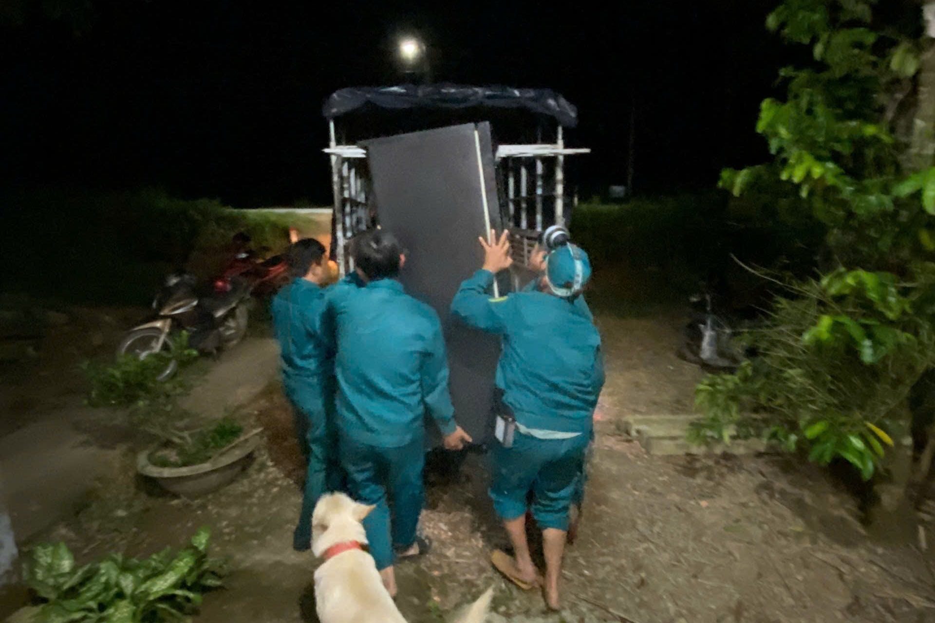 Cán bộ chiến sĩ di dời tài sản của người dân