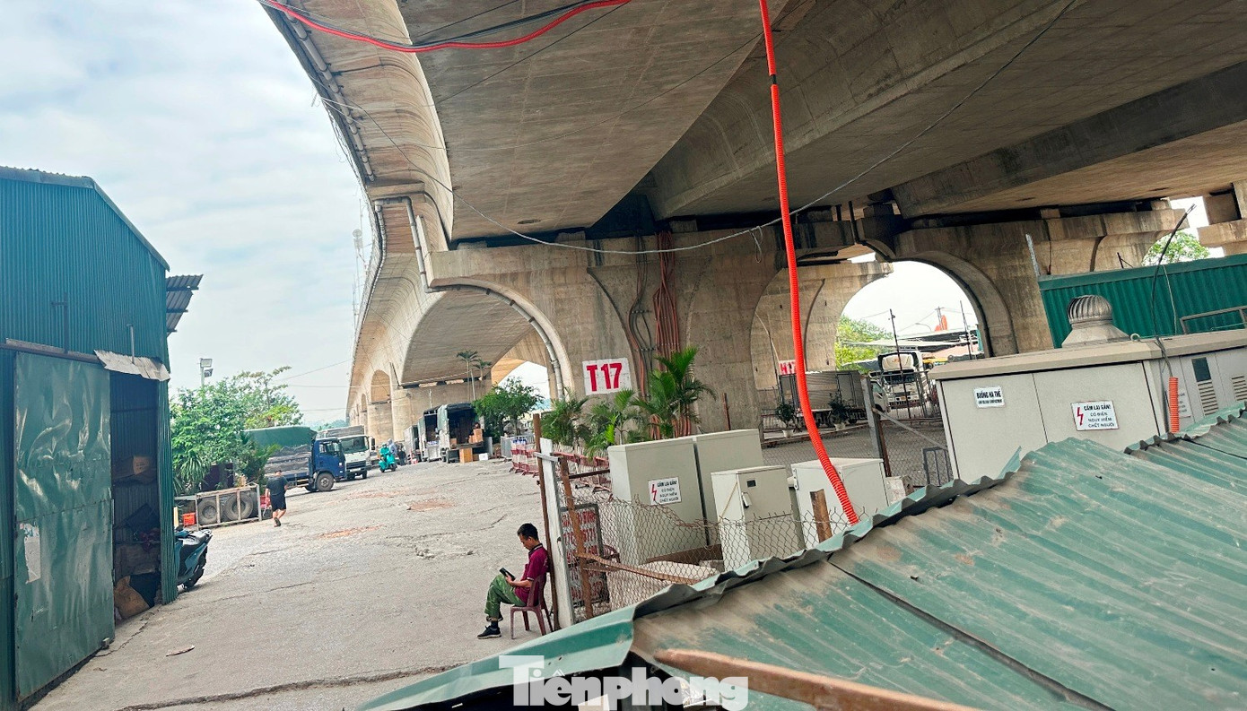 Gầm cầu Vĩnh Tuy đi qua phố Bạch Đằng đang còn một số nhà tôn nằm trong hành lang công trình giao thông, cấm vi phạm.