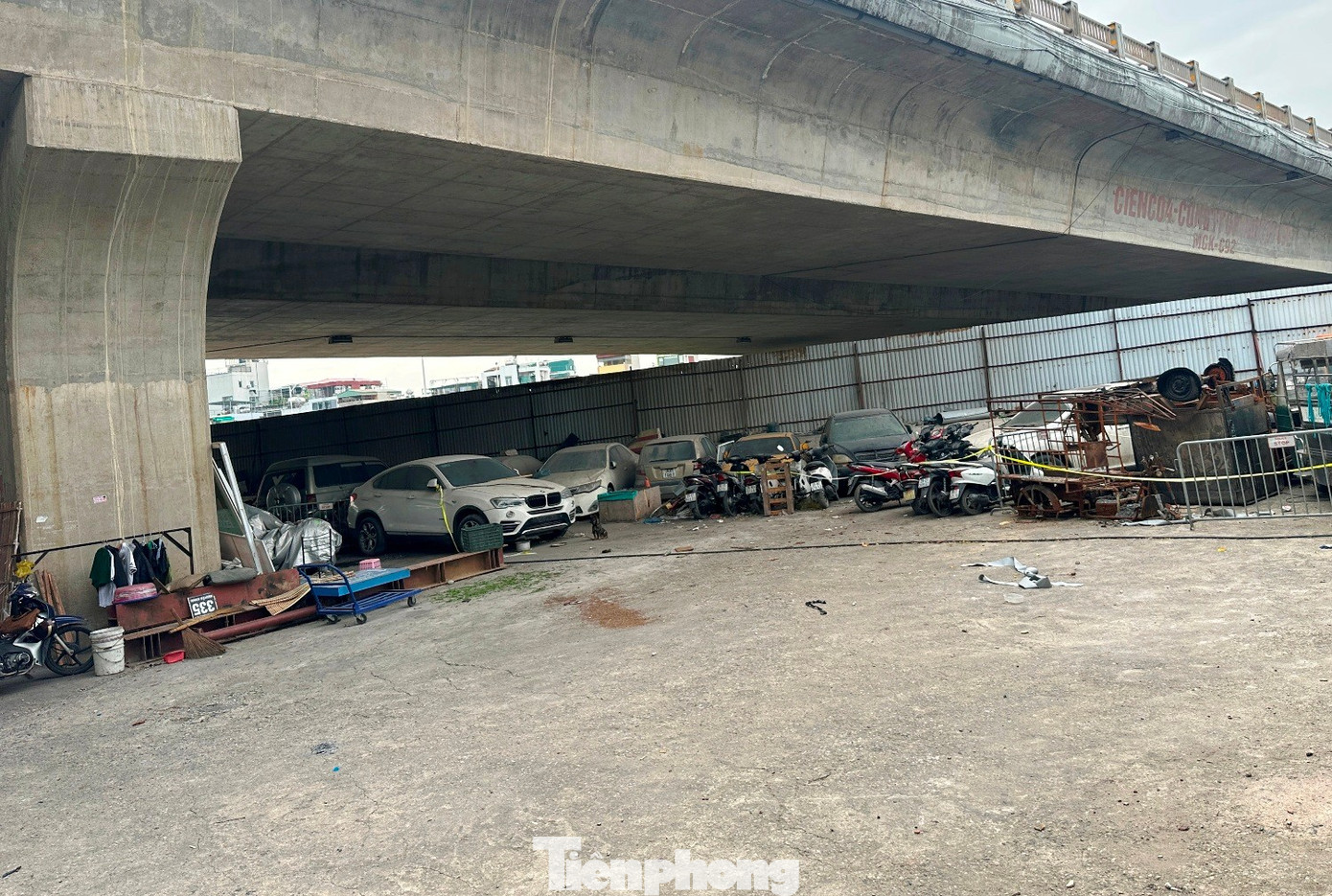 Tại khu vực nhánh đường dẫn từ cầu Vĩnh Tuy xuống đê Nguyễn Khoái trước đây vốn là bãi đỗ ô tô nhưng hiện một số ô tô vẫn chưa di dời đi hết.