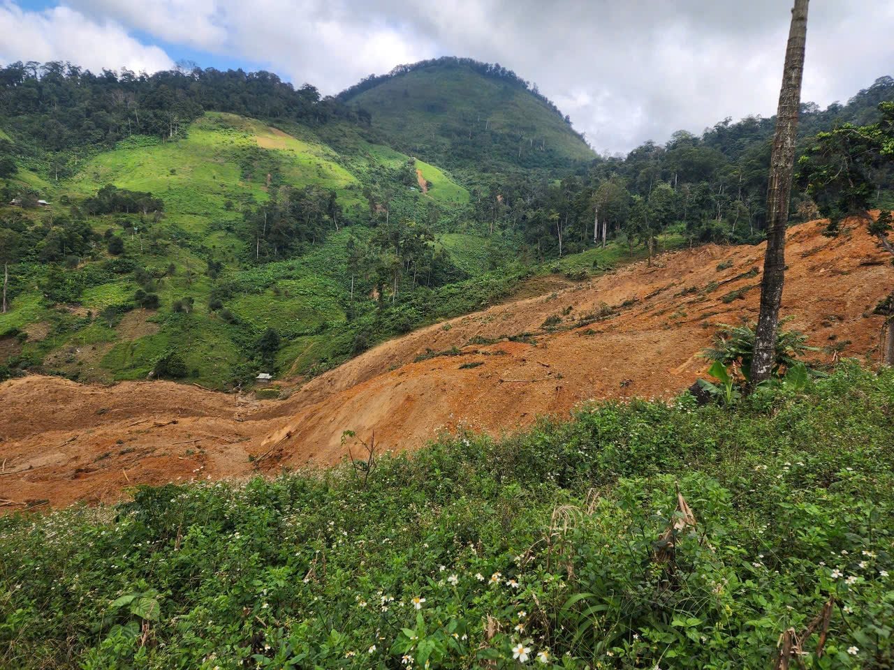 Ông Zơrâm Buôn cho biết khu vực sạt lở xuất hiện các vết nứt mới, đất đá từ phía đỉnh đồi tiếp tục rơi xuống theo từng đợt, tiềm ẩn nguy cơ mất an toàn rất cao. Lực lượng Biên phòng, dân quân và chính quyền xã chỉ có thể tiếp cận đến rìa hiện trường, chưa thể vào sâu do địa hình biến dạng mạnh, suối bị xé toạc và độ dốc lớn.