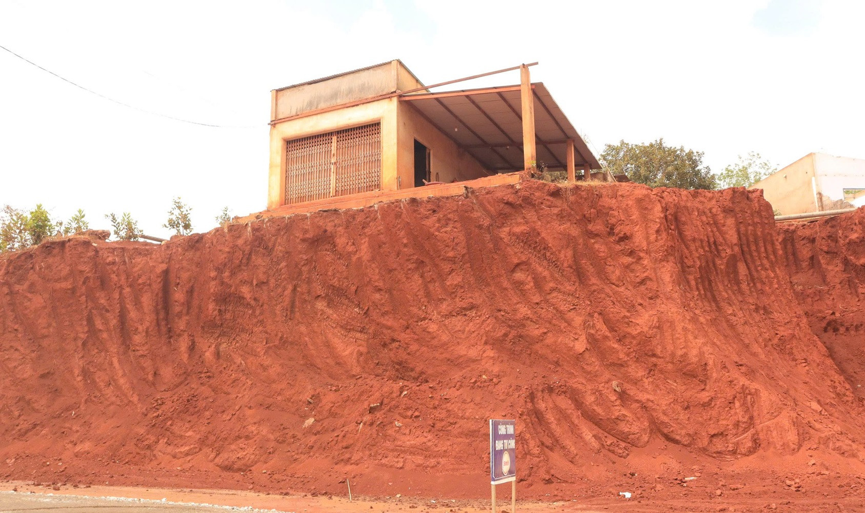 Một căn nhà nằm chênh vênh bên vách đất. Ảnh: X.A